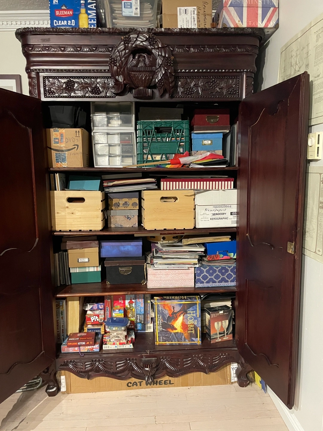 Antique mahogany armoire for sale. Estimated to be around 300 years old.