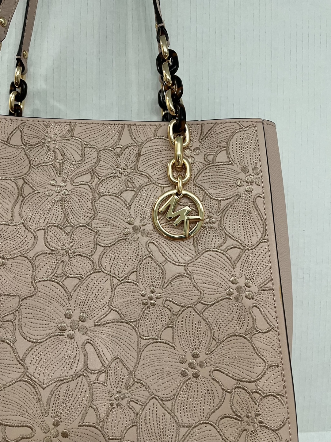 • Saffiano Leather with Floral Embroidery