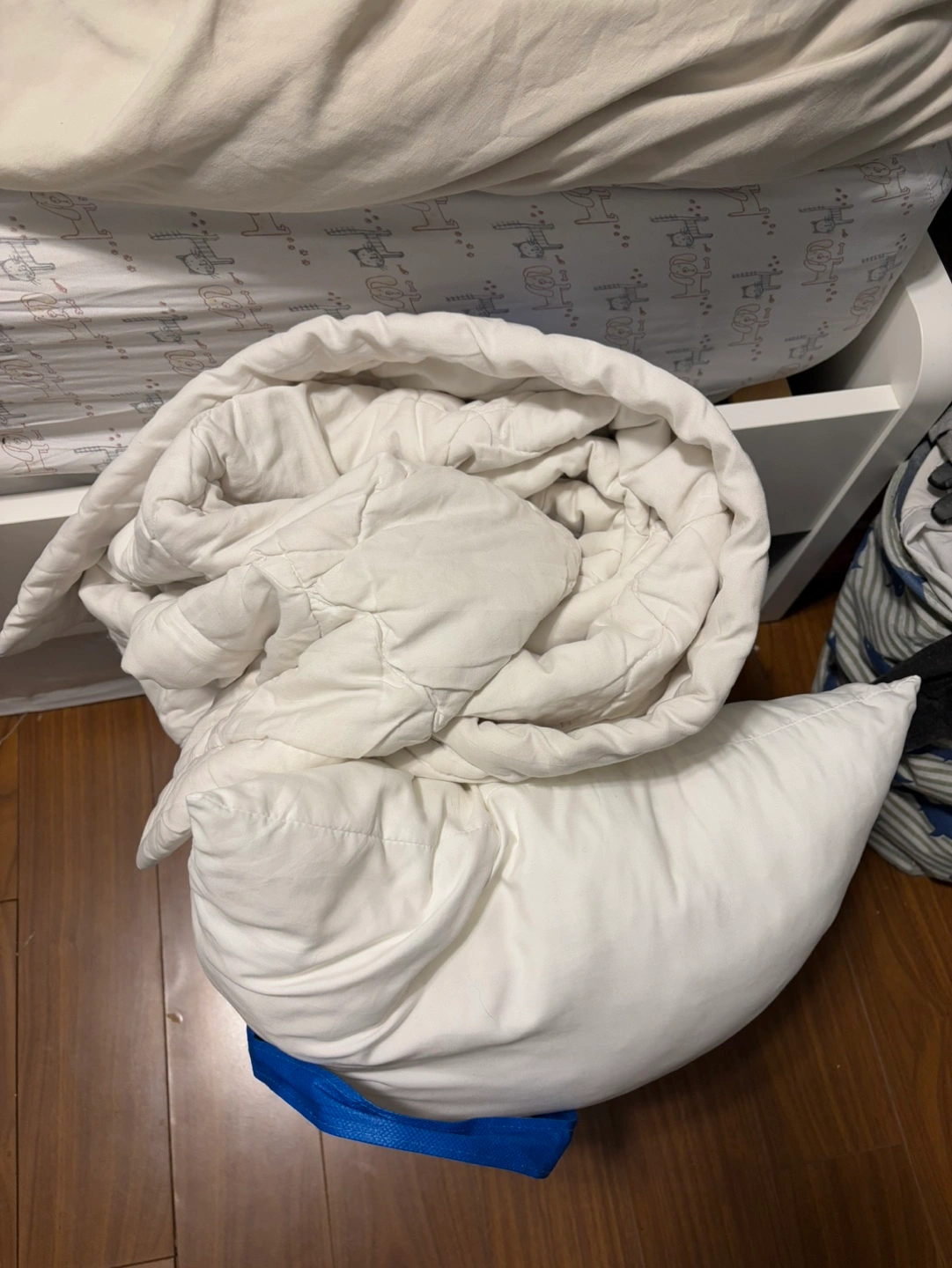 415White blanket and pillow. Both in good condition. Doesnt have any problems, just that we bought a bigger blanket and have too many pillows. I have cats so probably not for people with allergies. Pickup near Ossington and Dundas
