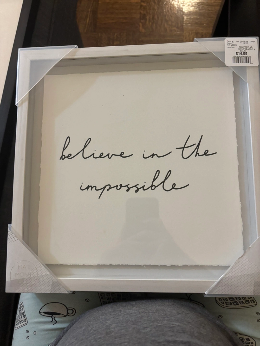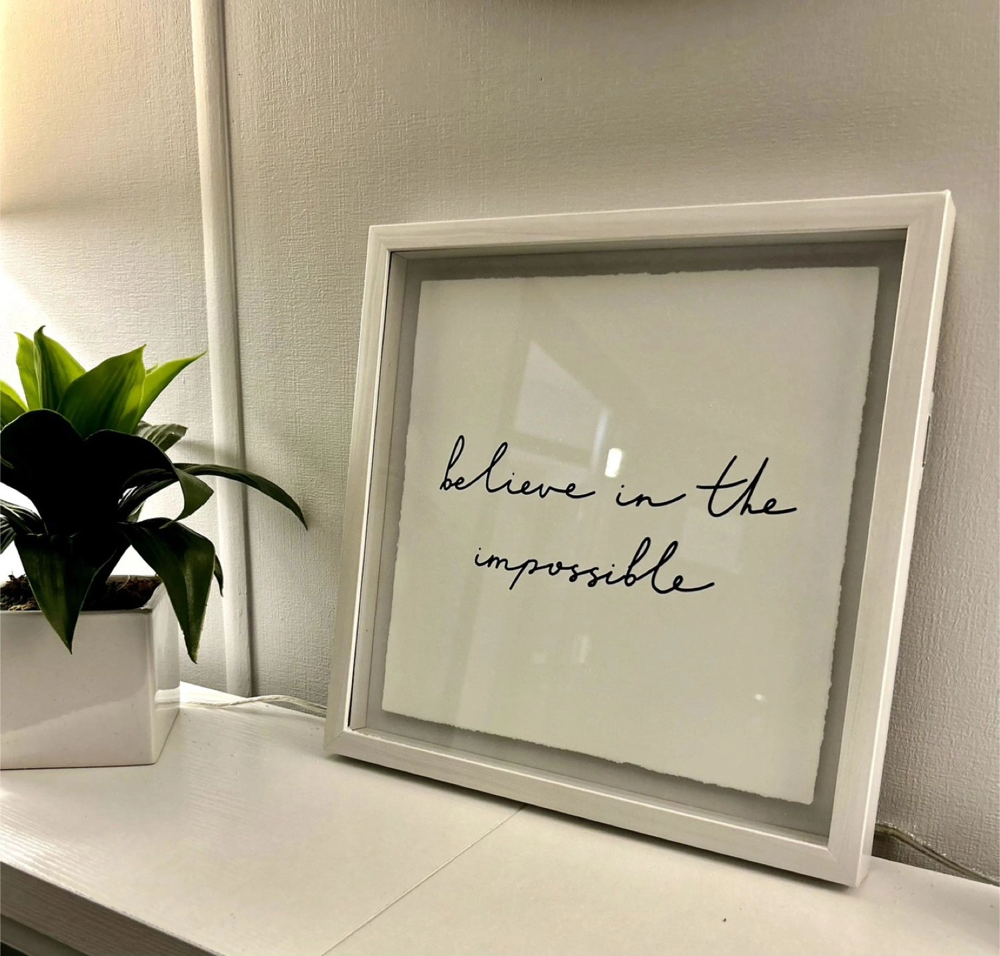 Framed print with inspirational quote. White frame with clear glass. Quality and finish are stunning. This could be a great gift