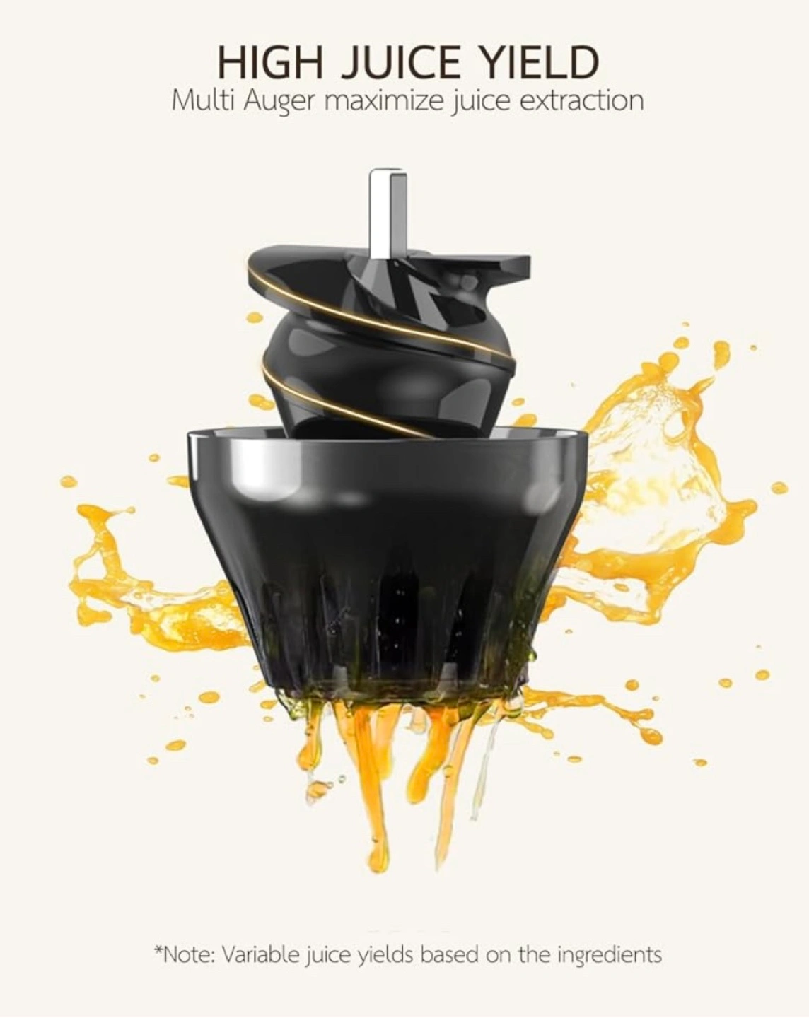 UPGRADED COLD PRESS TECHNOLOGY: Our cold press juicer features advanced 3-in-1 cold press technology combined with ultra-fine 0.1mm compound grinding teeth. This innovative design preserves essential nutrients and enzymes, delivering juice with enhanced purity and optimal absorption. Perfect for health-conscious individuals seeking the highest quality juice.