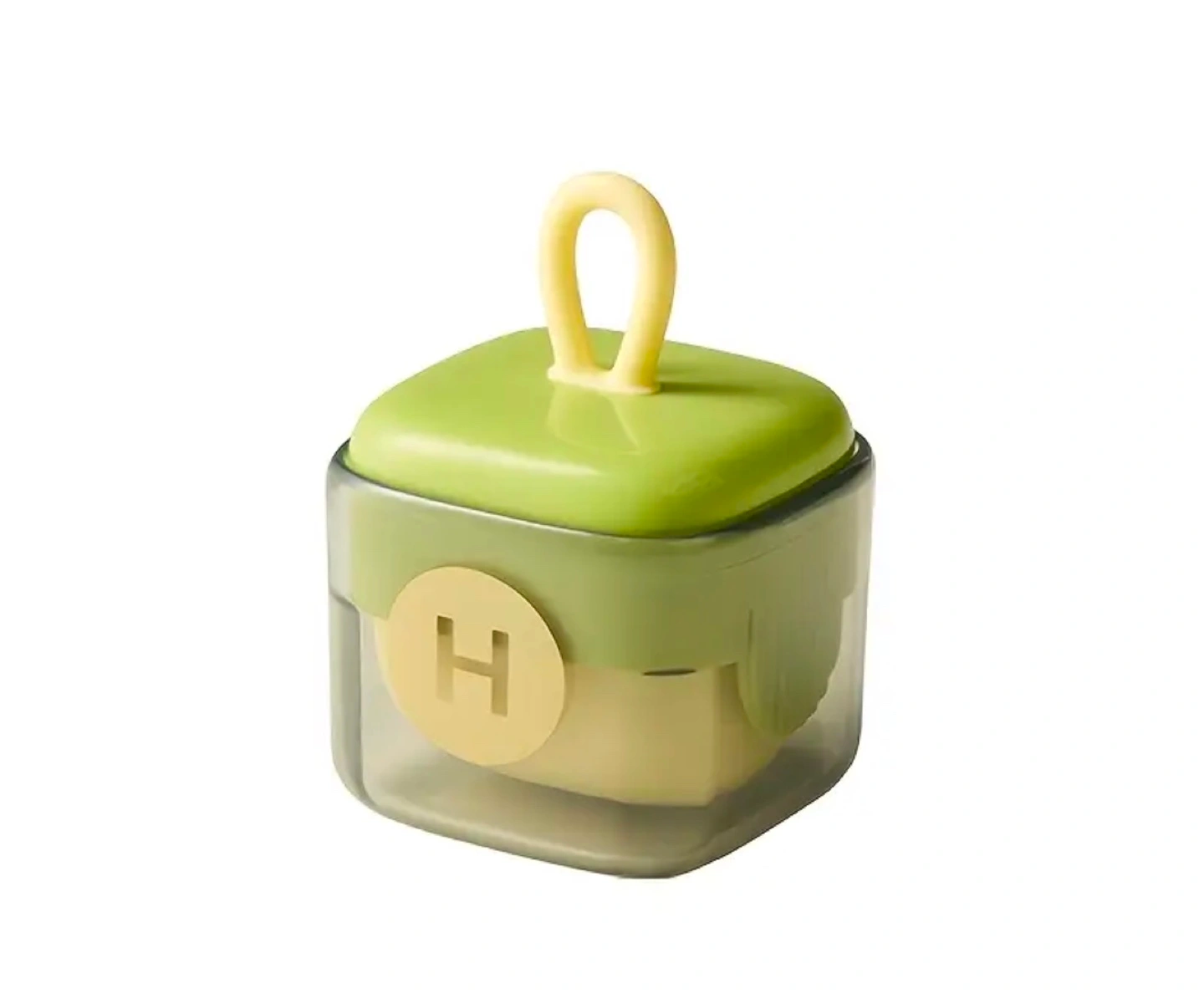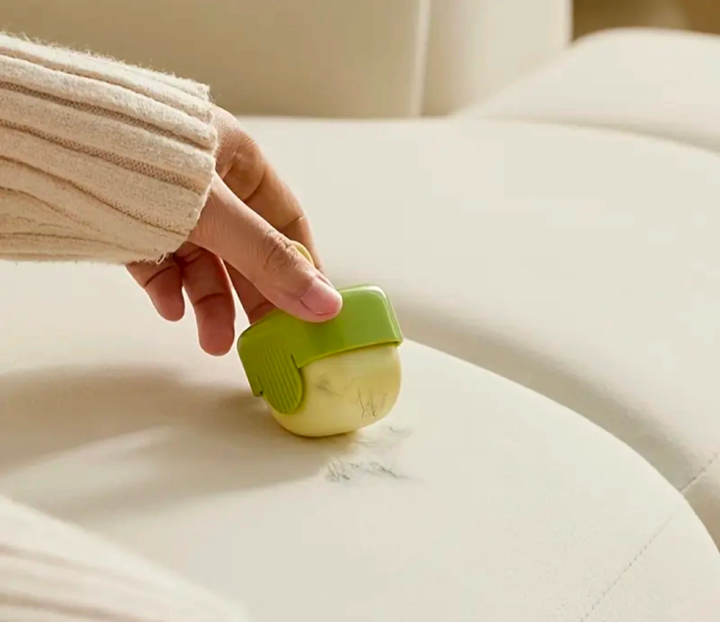 Reusable lint roller. Green and yellow. Comes with a removable and washable sticky pad. Easy to use.