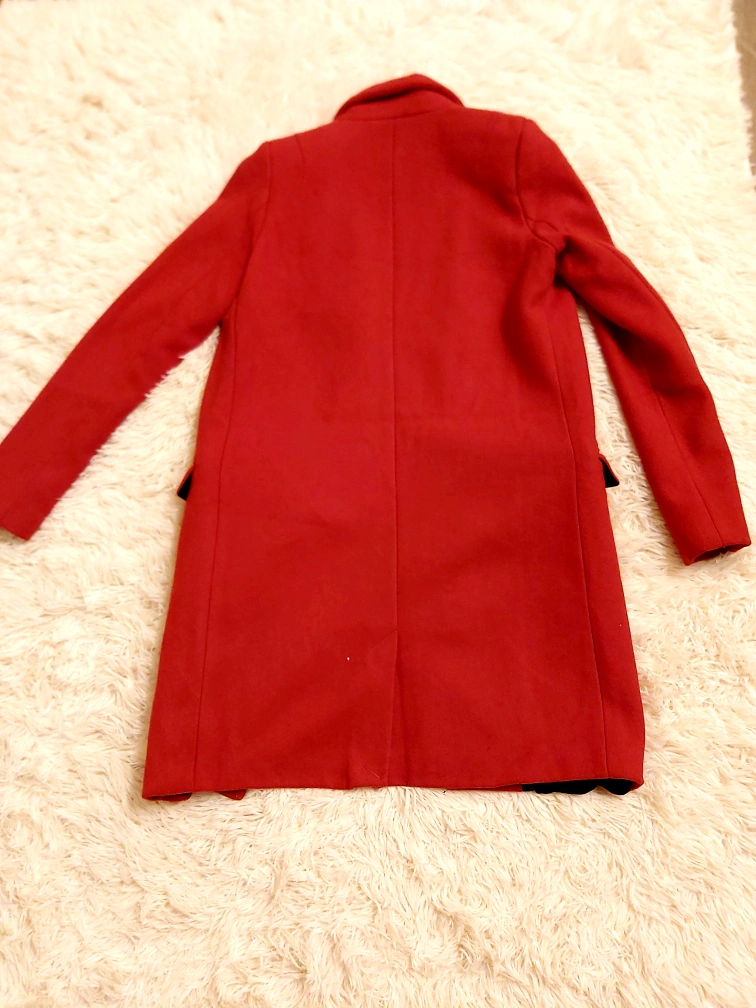 size small Red Longline Wool pea Coat
