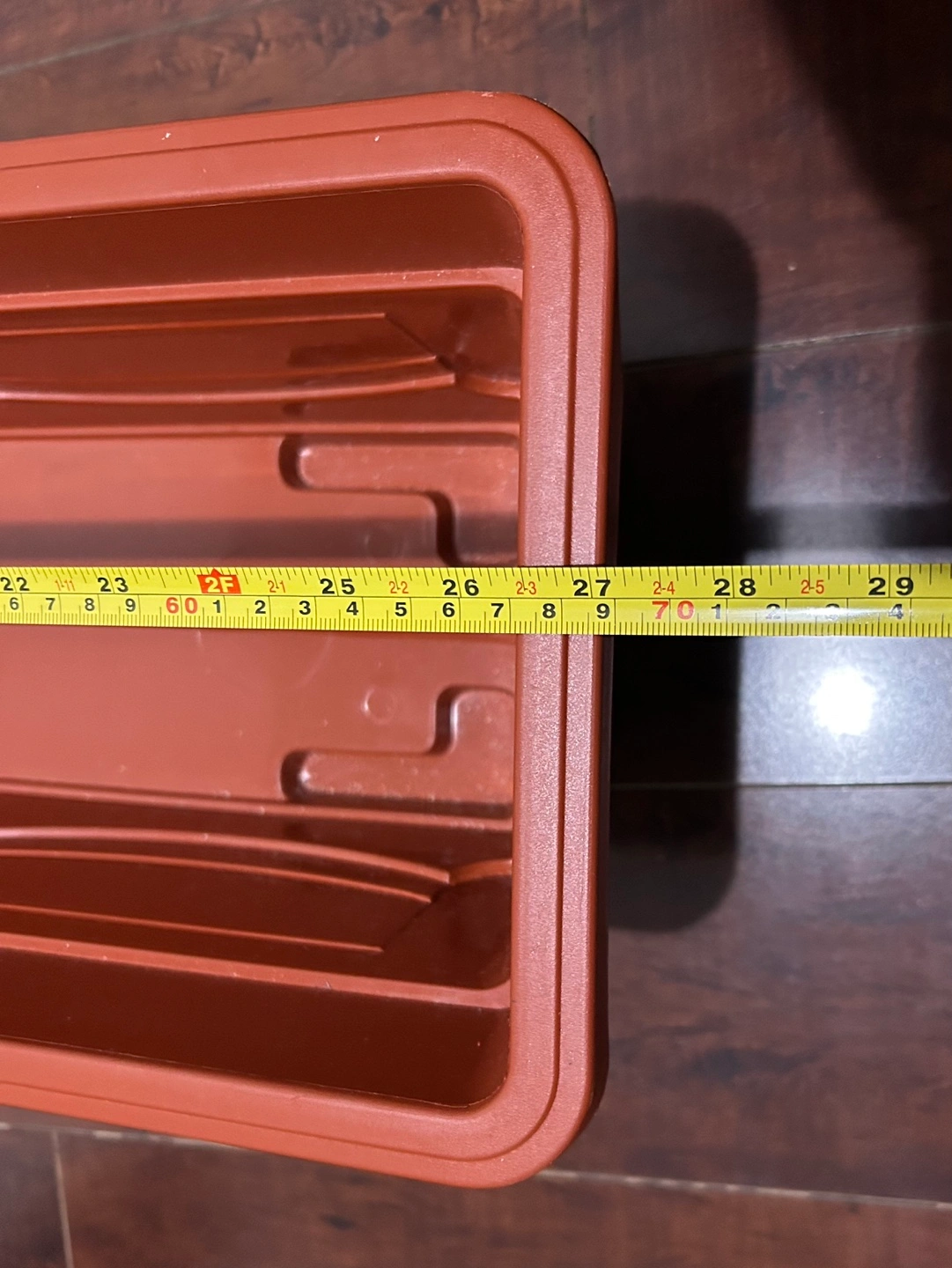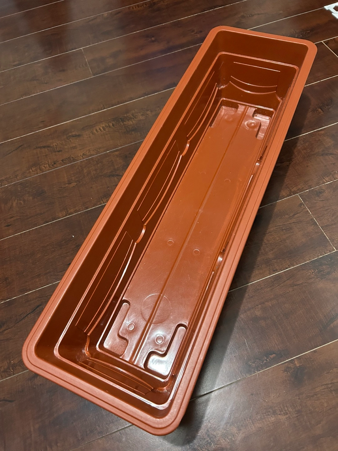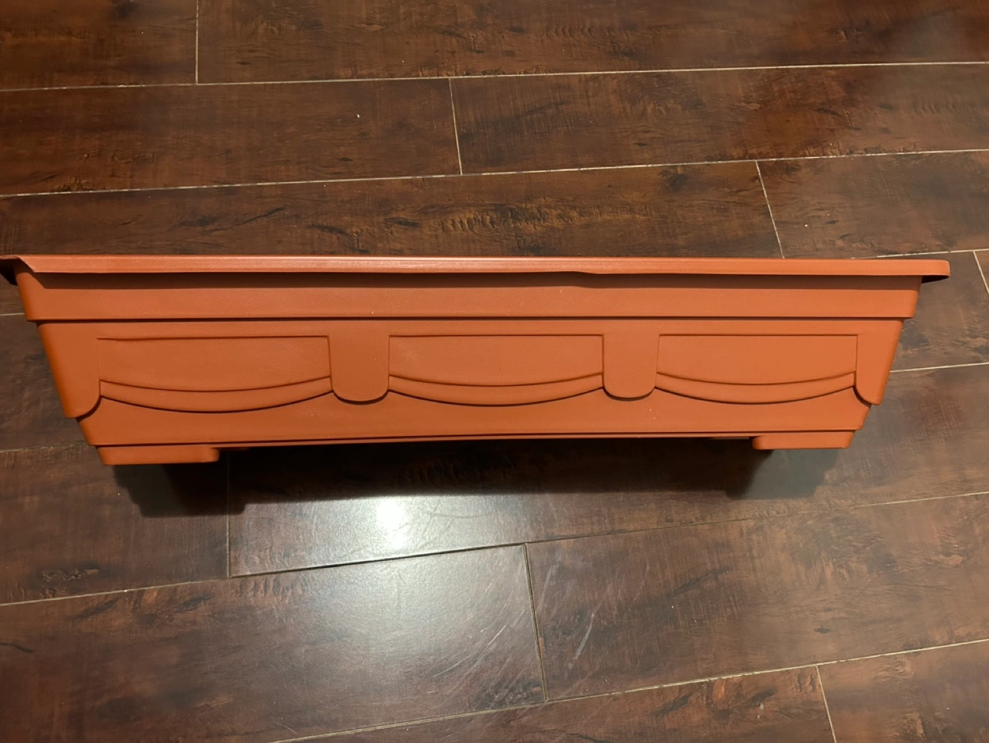 Large terracotta planter with a decorative edge. Approximately 28 inches long.
