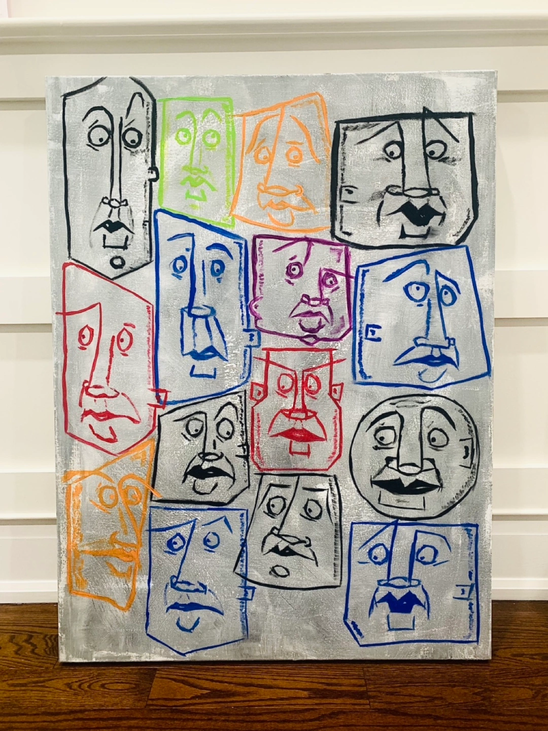 Graffiti faces panted on a gallery canvas. 30 inch x 40 inch canvas. 1.5 deep. Hanger on back.