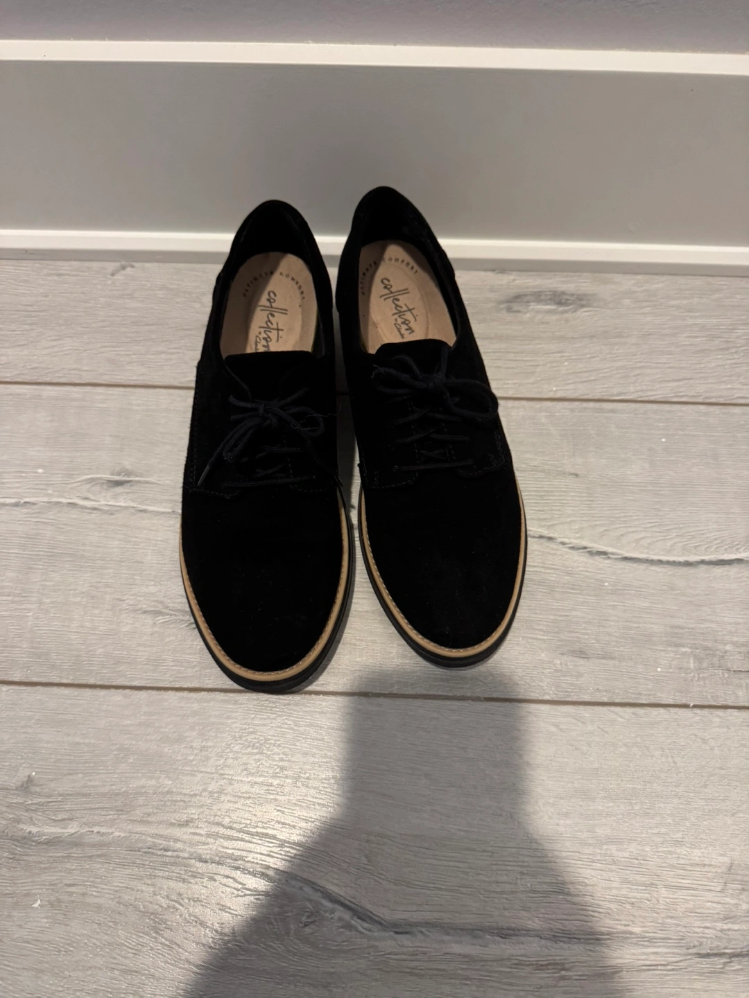 Clark’s Black Suede Platform Oxfords