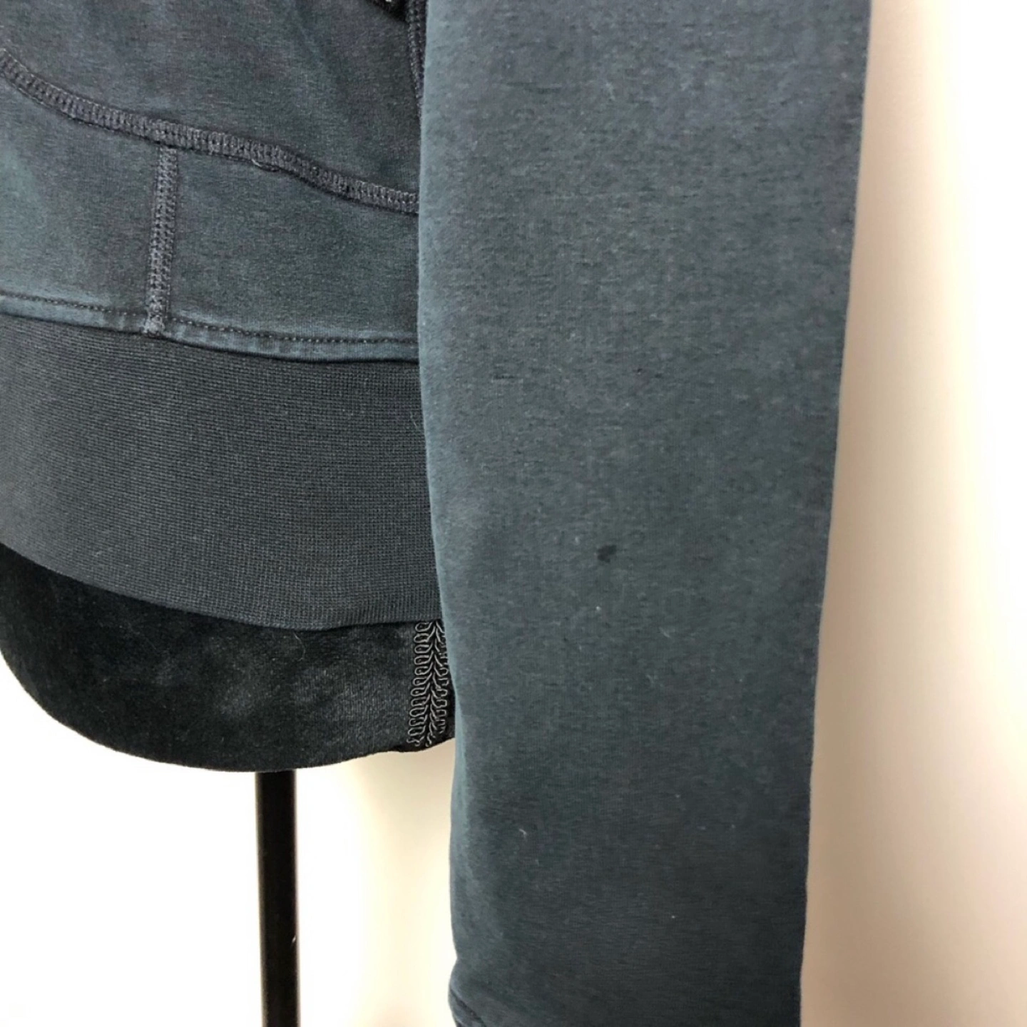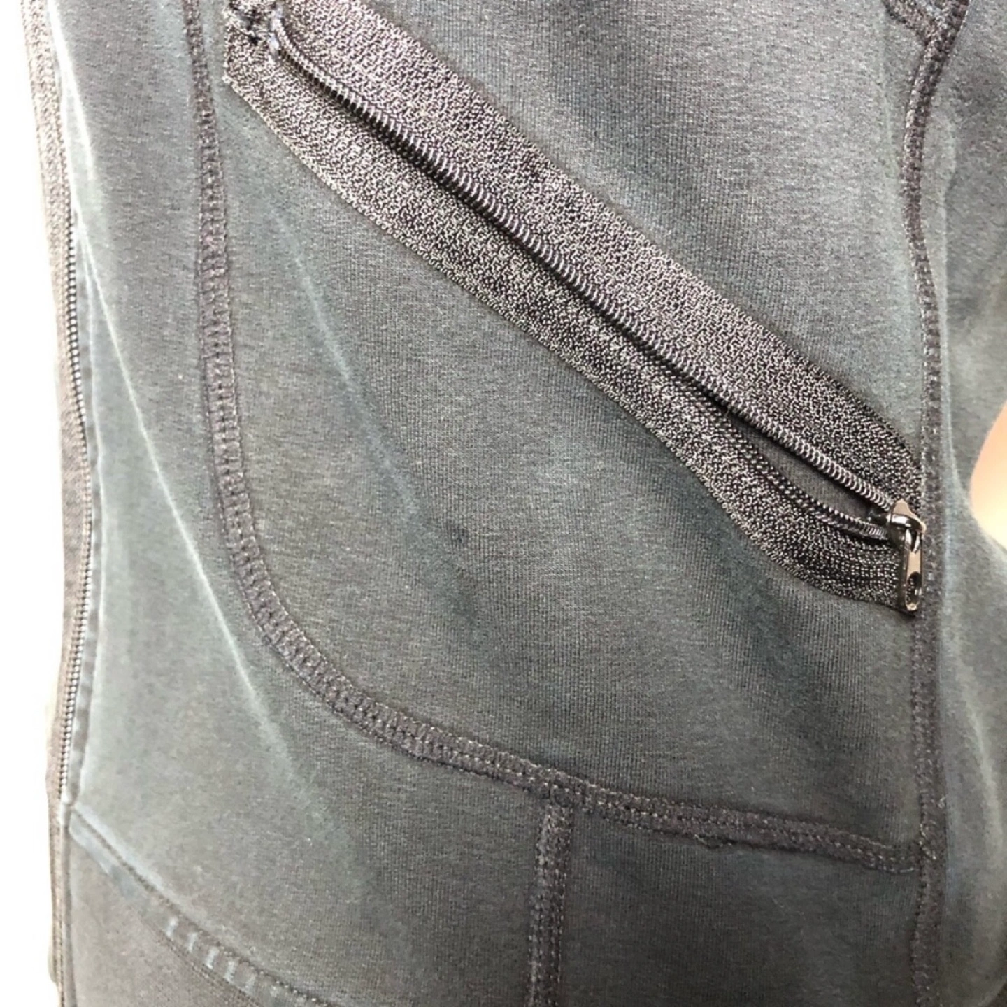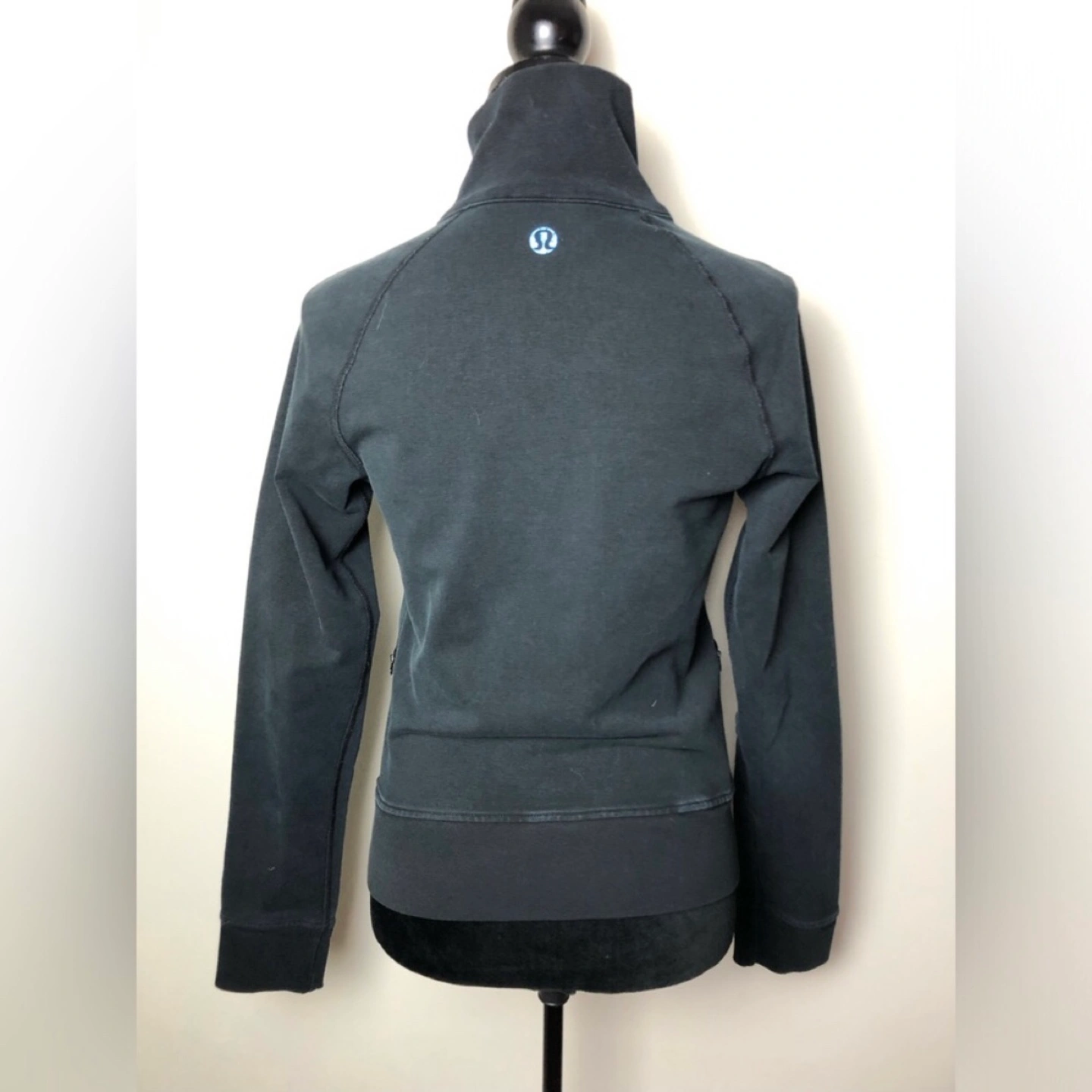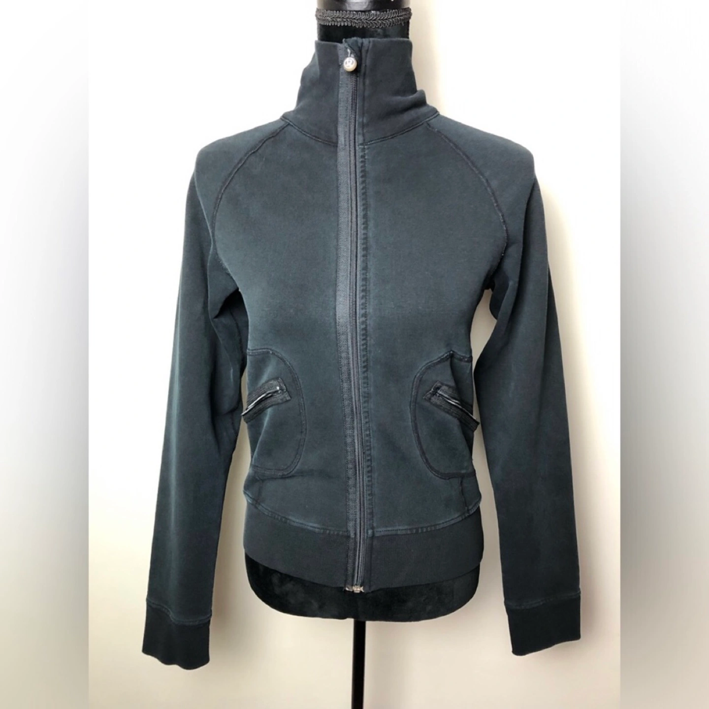 Lululemon Jacket. Tag size not available. Measures small. Small stain spot on front left pocket and tiny hole on left arm. In good condition. Please view all pictures and don’t forget to double check your measurements.