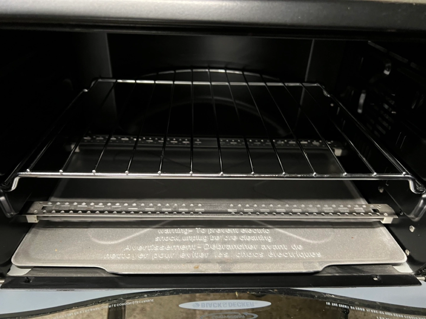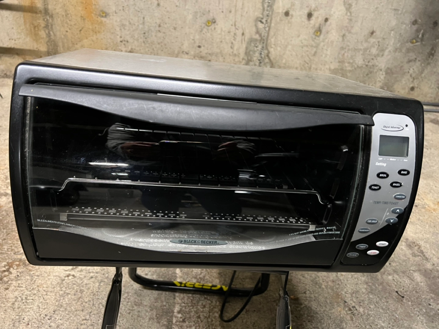70Black and Decker toaster oven. Includes baking pan and wire rack. Has digital controls. Clean