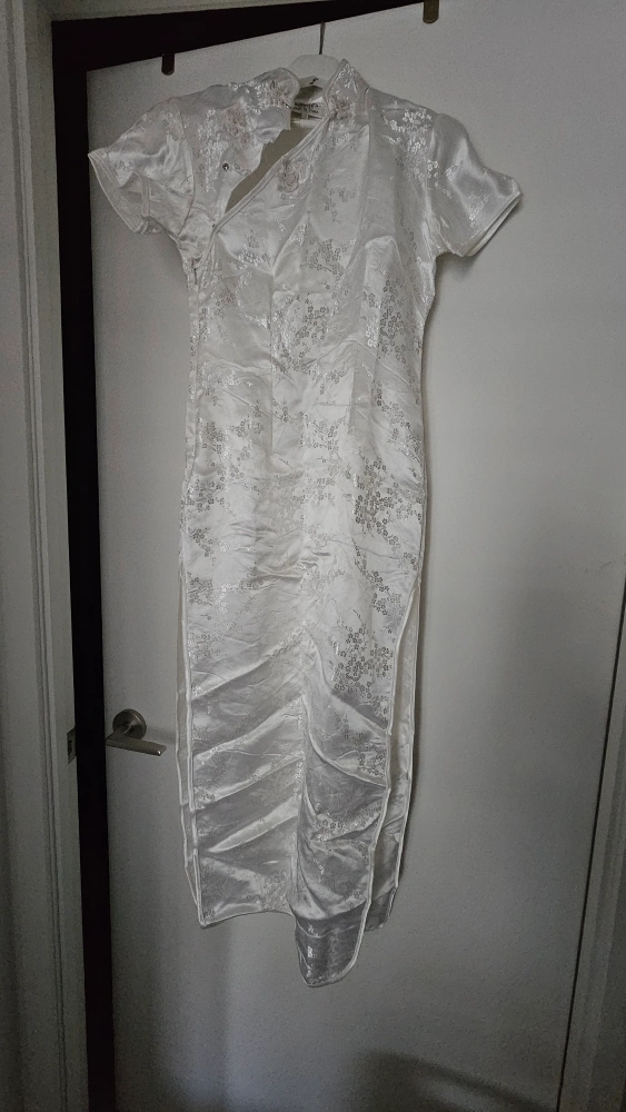 White silk cheongsam dress with floral pattern. Size S. $60. selling for a friend
