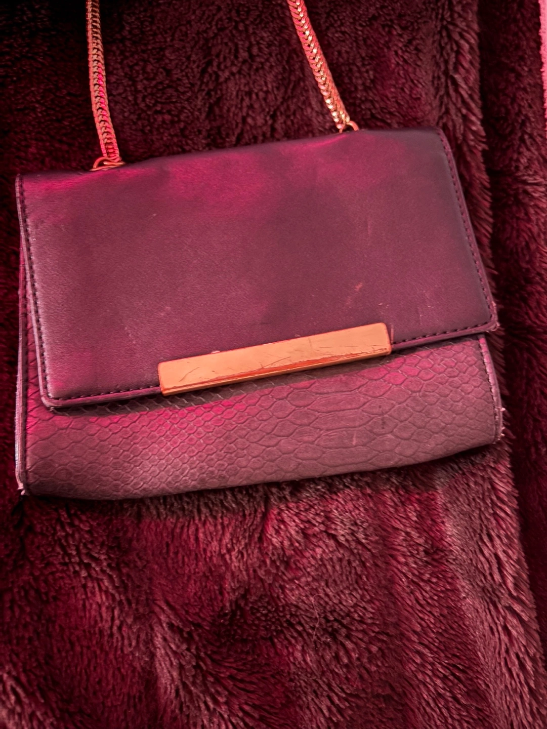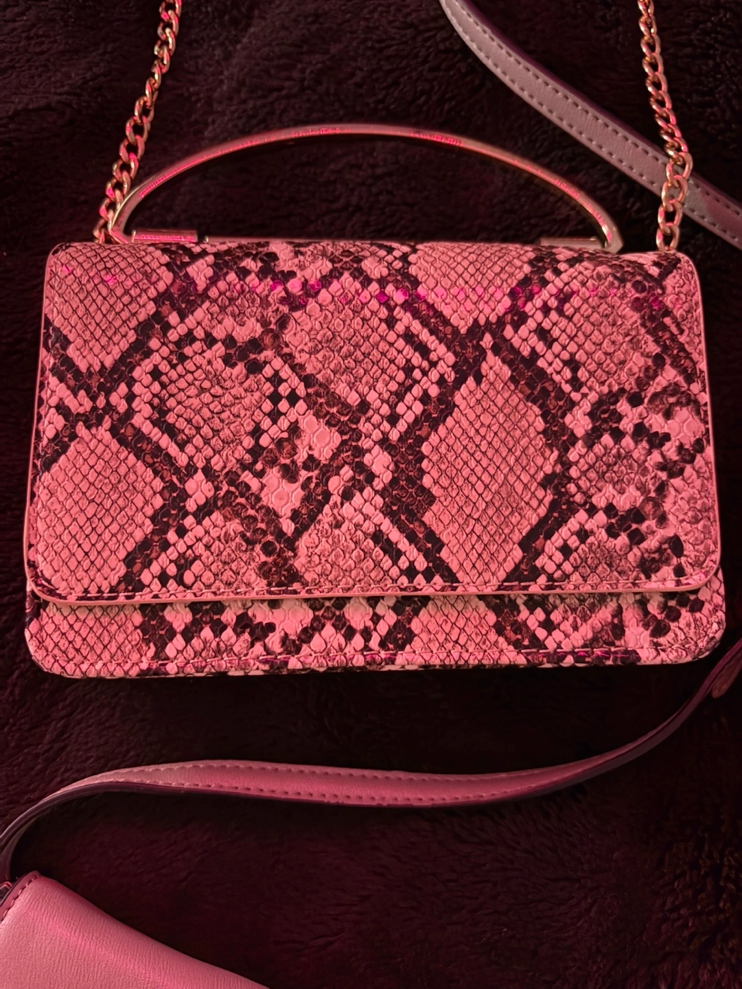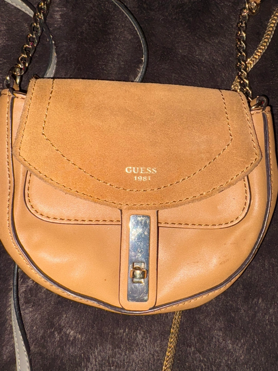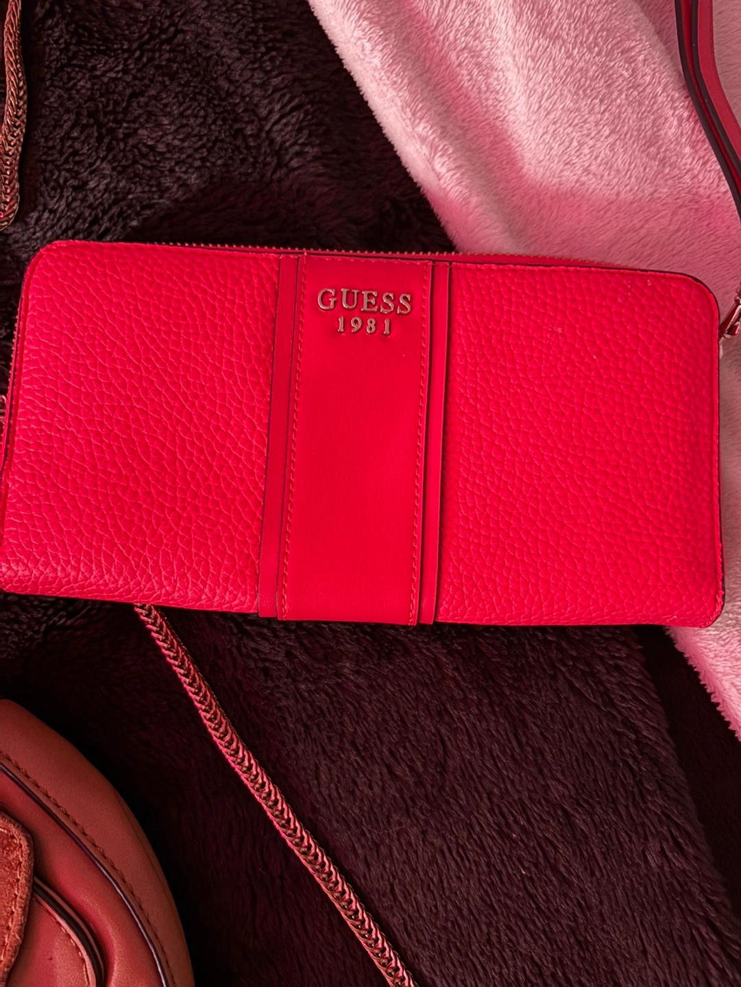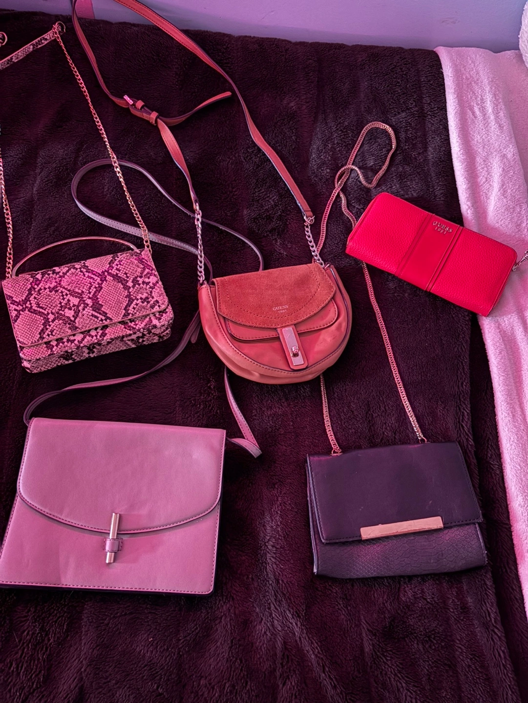 Bundle of 5 purses, includes a Guess wallet and a Guess crossbody purse. All have chain straps.