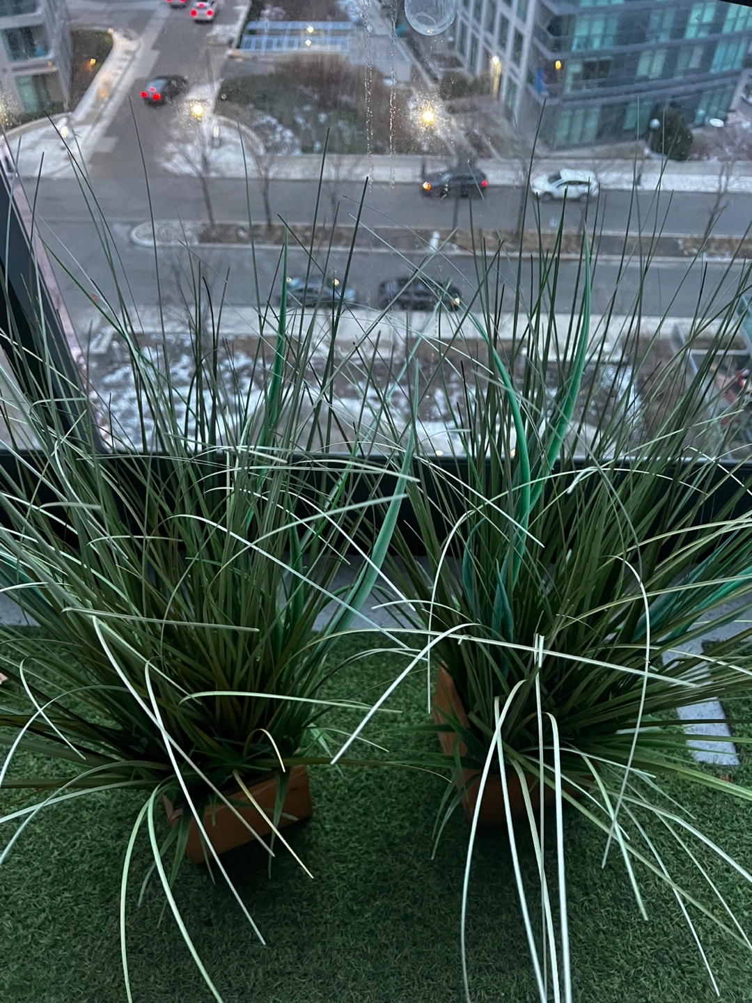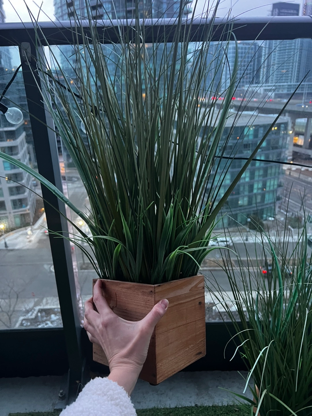226Two faux grass plants in wooden pots. Perfect for indoor or outdoor decor.