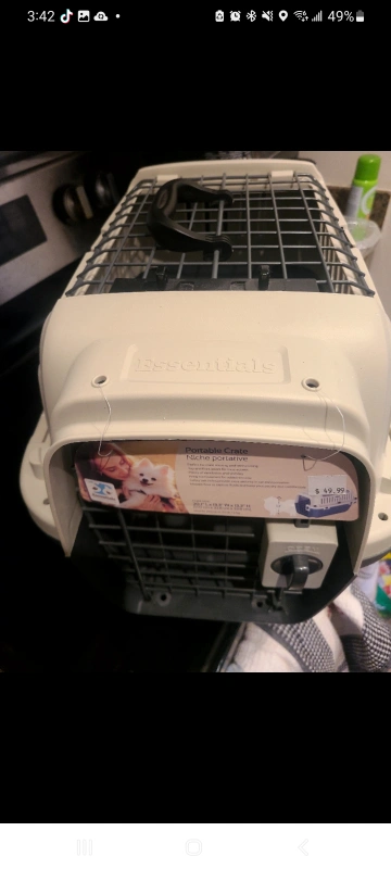 This is a great option for crate training or transporting your pet. It includes a handle on top for easy carrying. It has a secure latching door. It is made of durable plastic and includes a wire mesh top to provide ventilation.