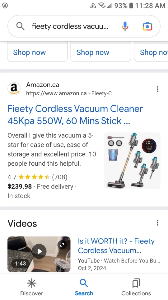 Fieety Cordless Vacuum Cleaner 45Kpa 550W, 60 Mins Stick Vacuum