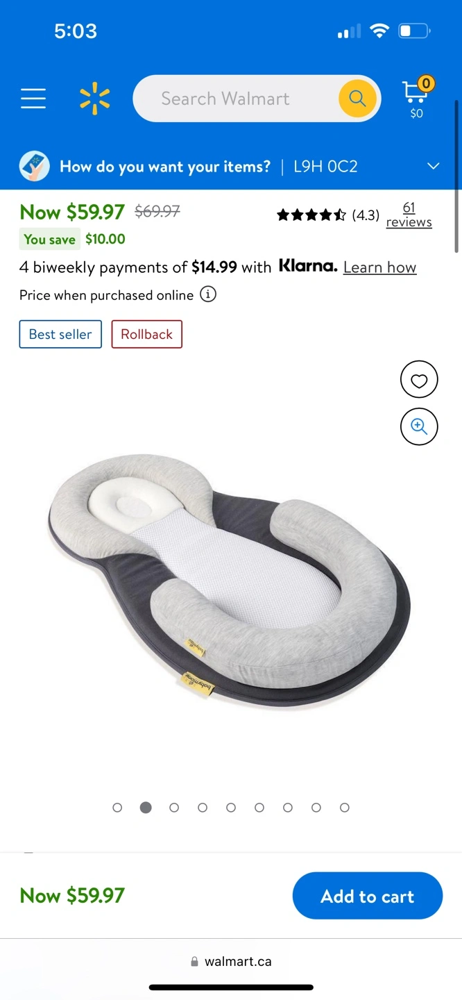 Baby sleep positioner with grey and white fabric.