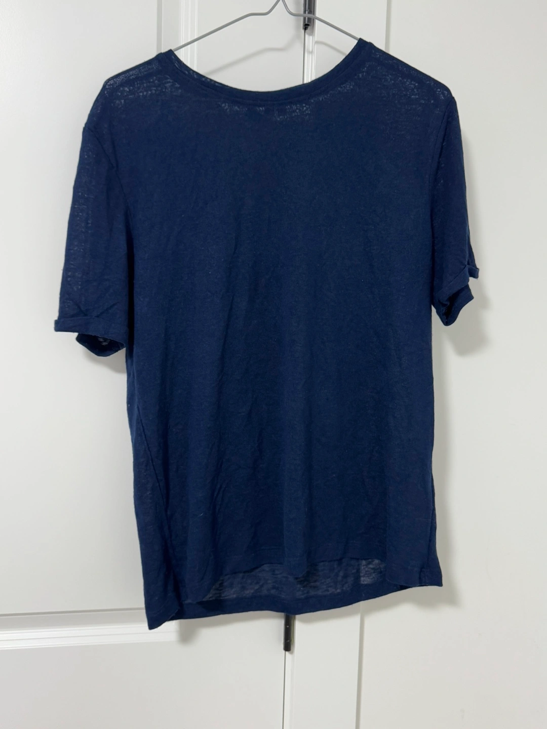 39Short sleeve t-shirt, blue linen, crew neck.