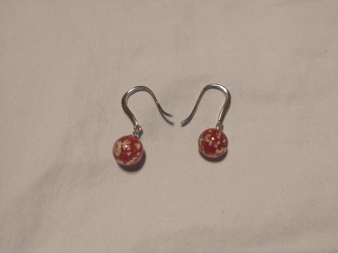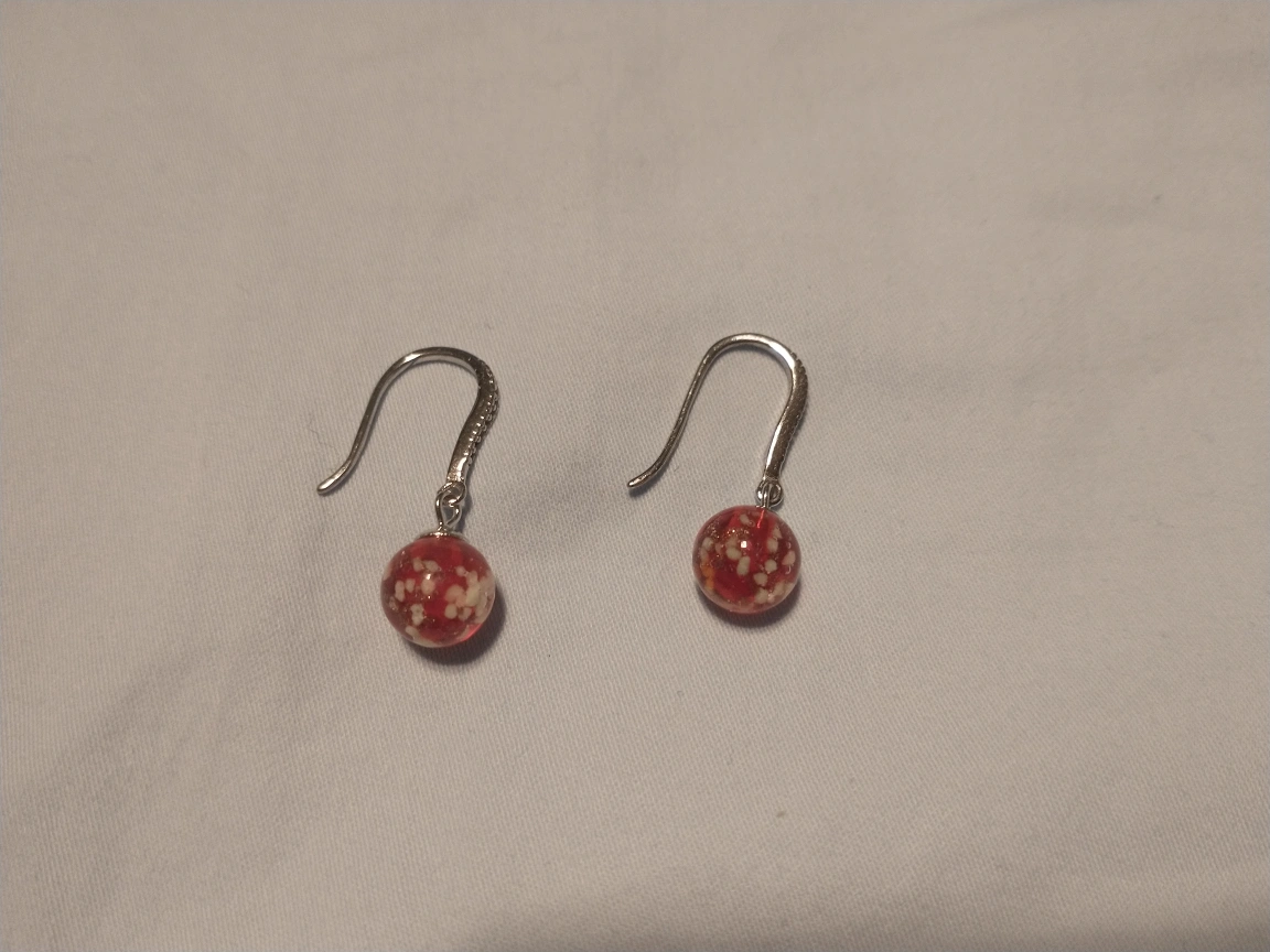 Nogu ruby .925 sterling silver firefly glass huggie earrings