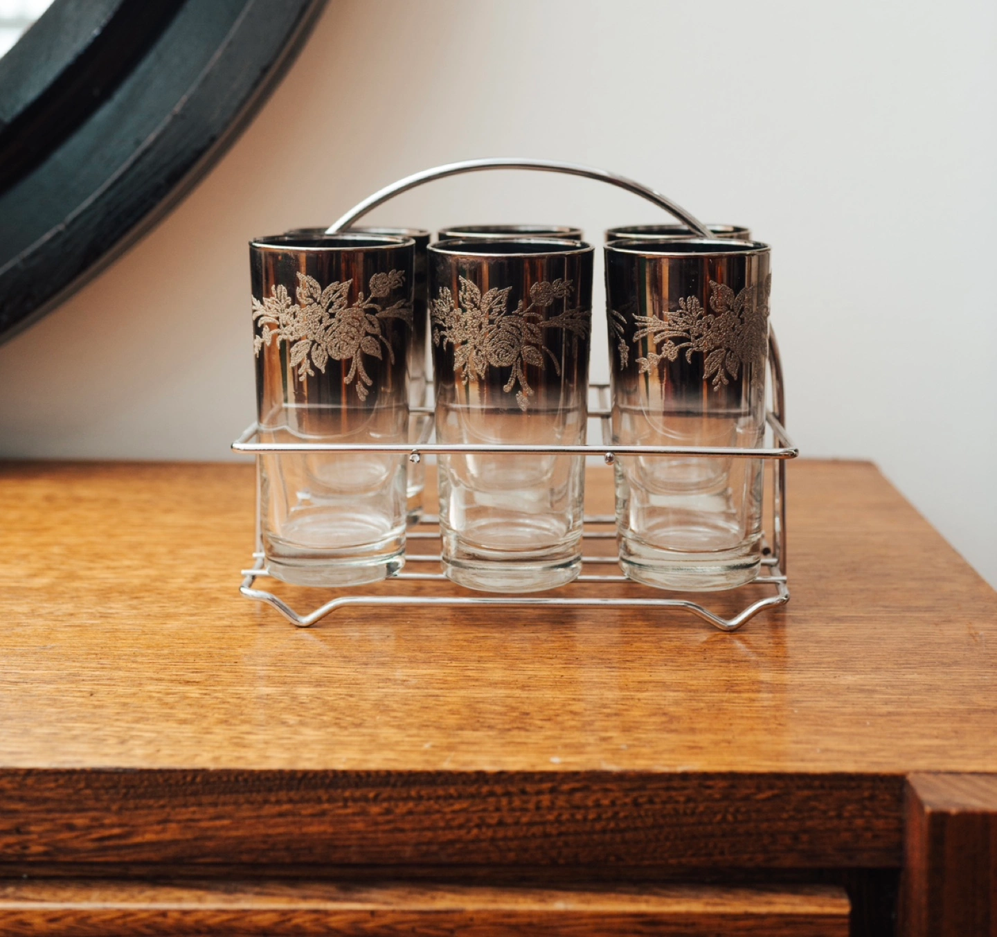 MCM Etched Smoked Glass Highball Set 🤎