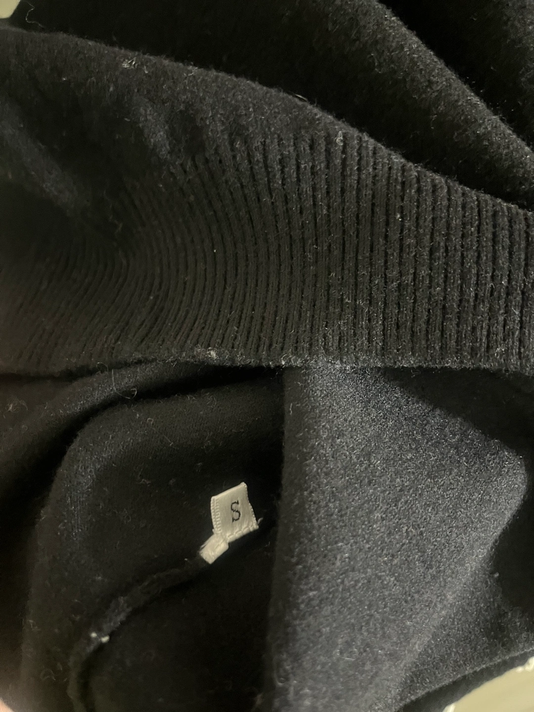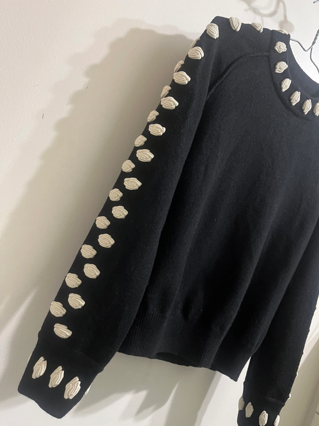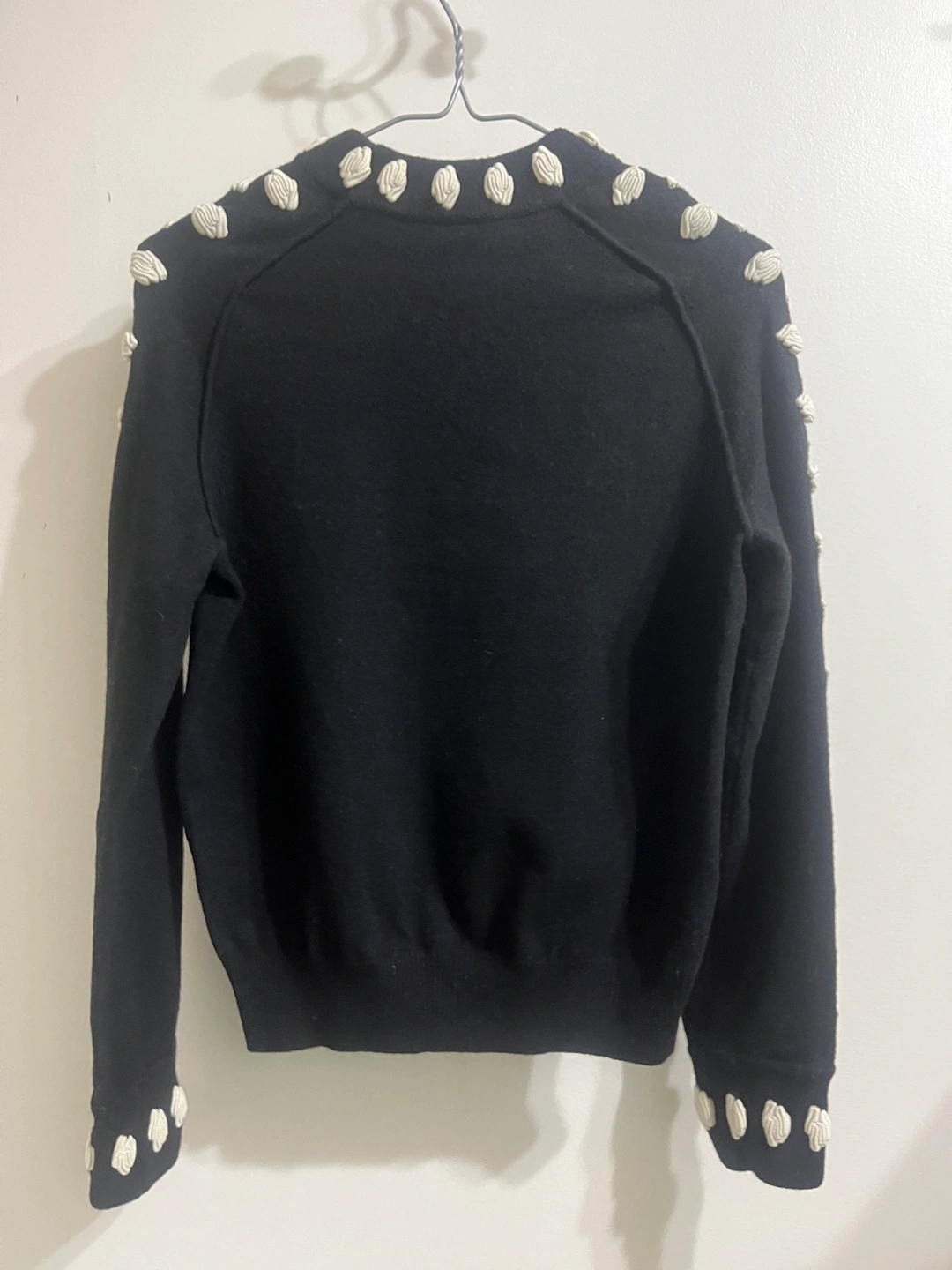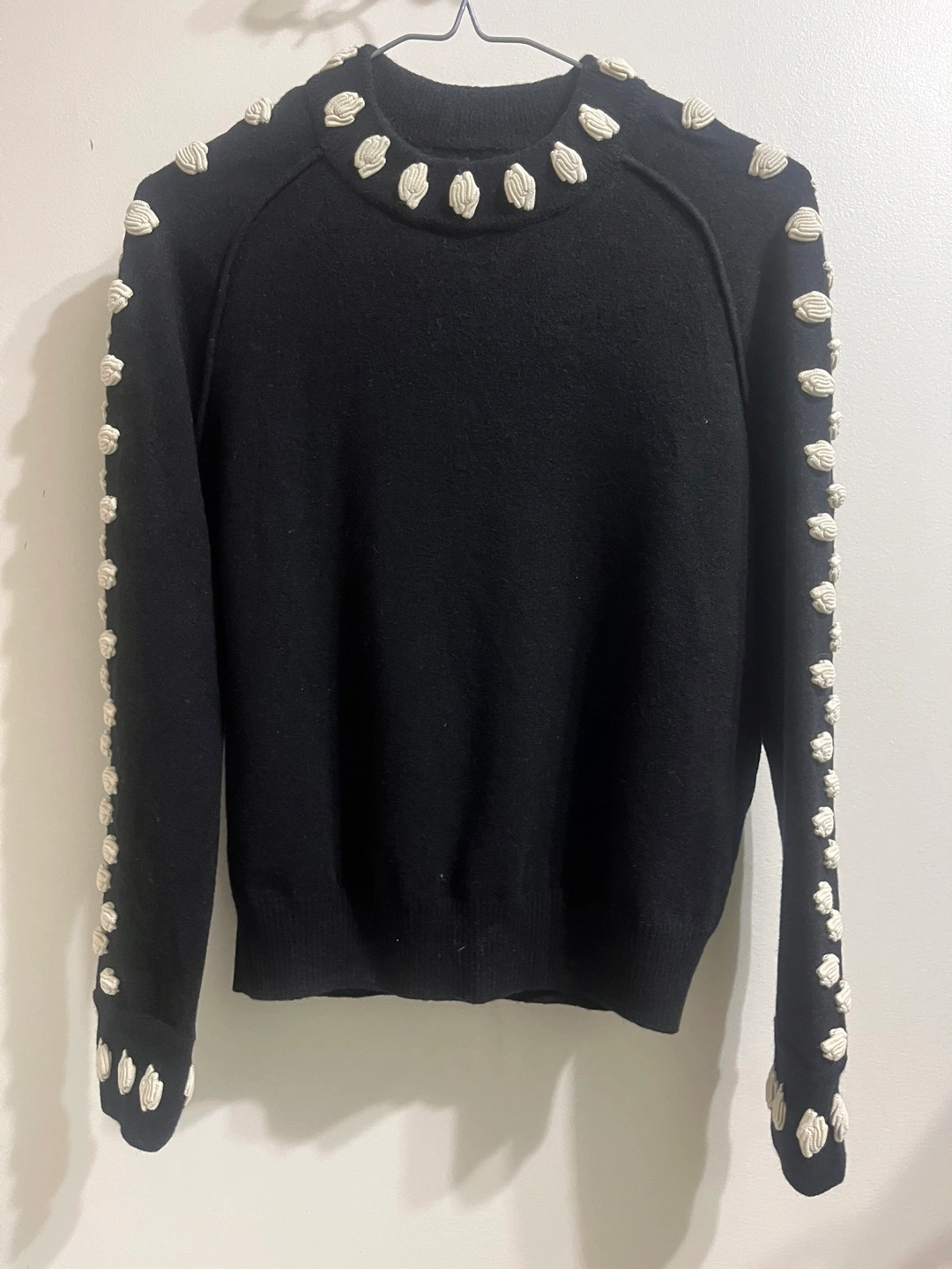 Black wool sweater with white embellishments on shoulders and sleeves. Wore two times.