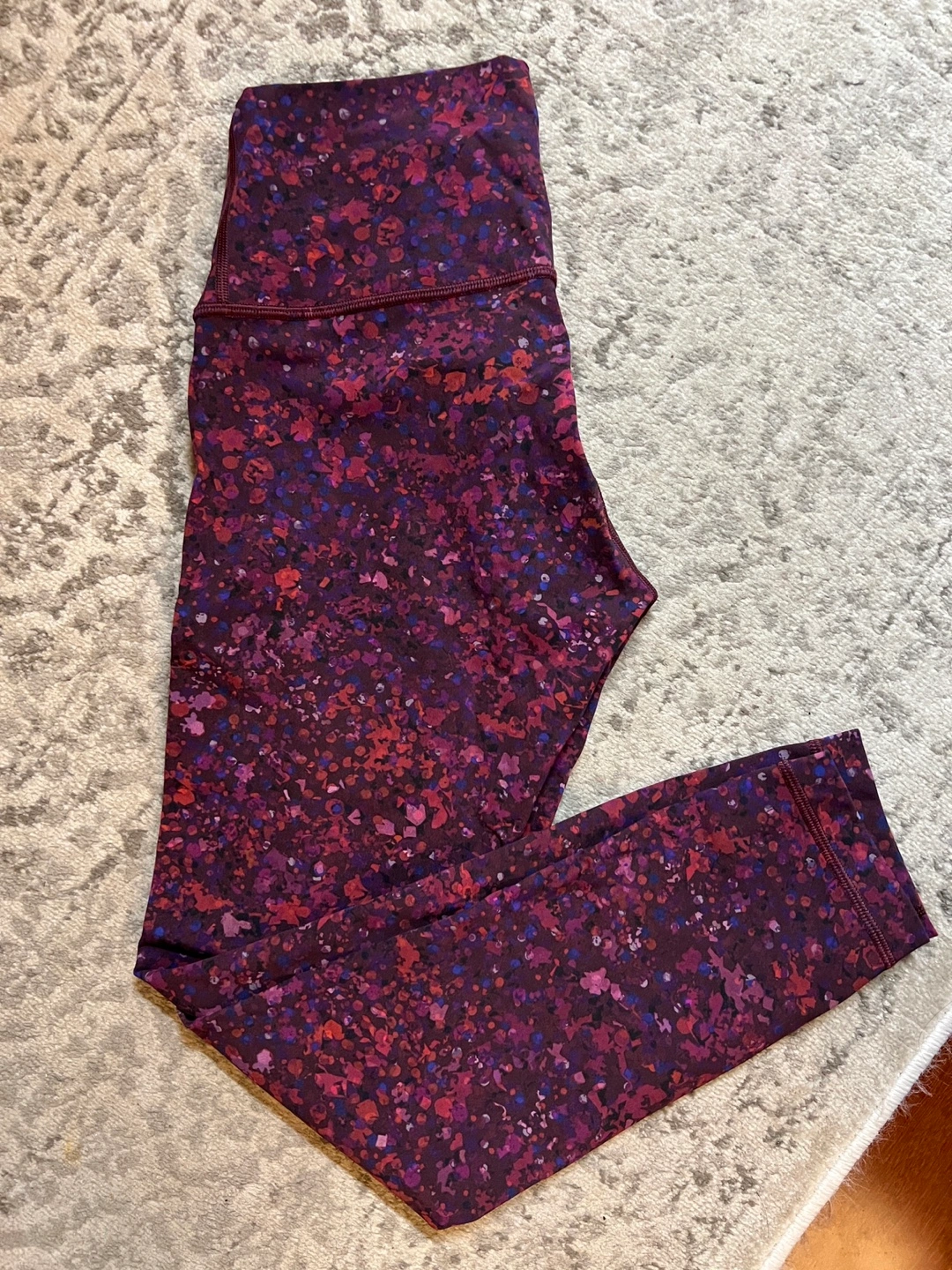 Lululemon pants in a colourful print. Size 6. 24 inch inseam. 9” rise. Excellent condition.