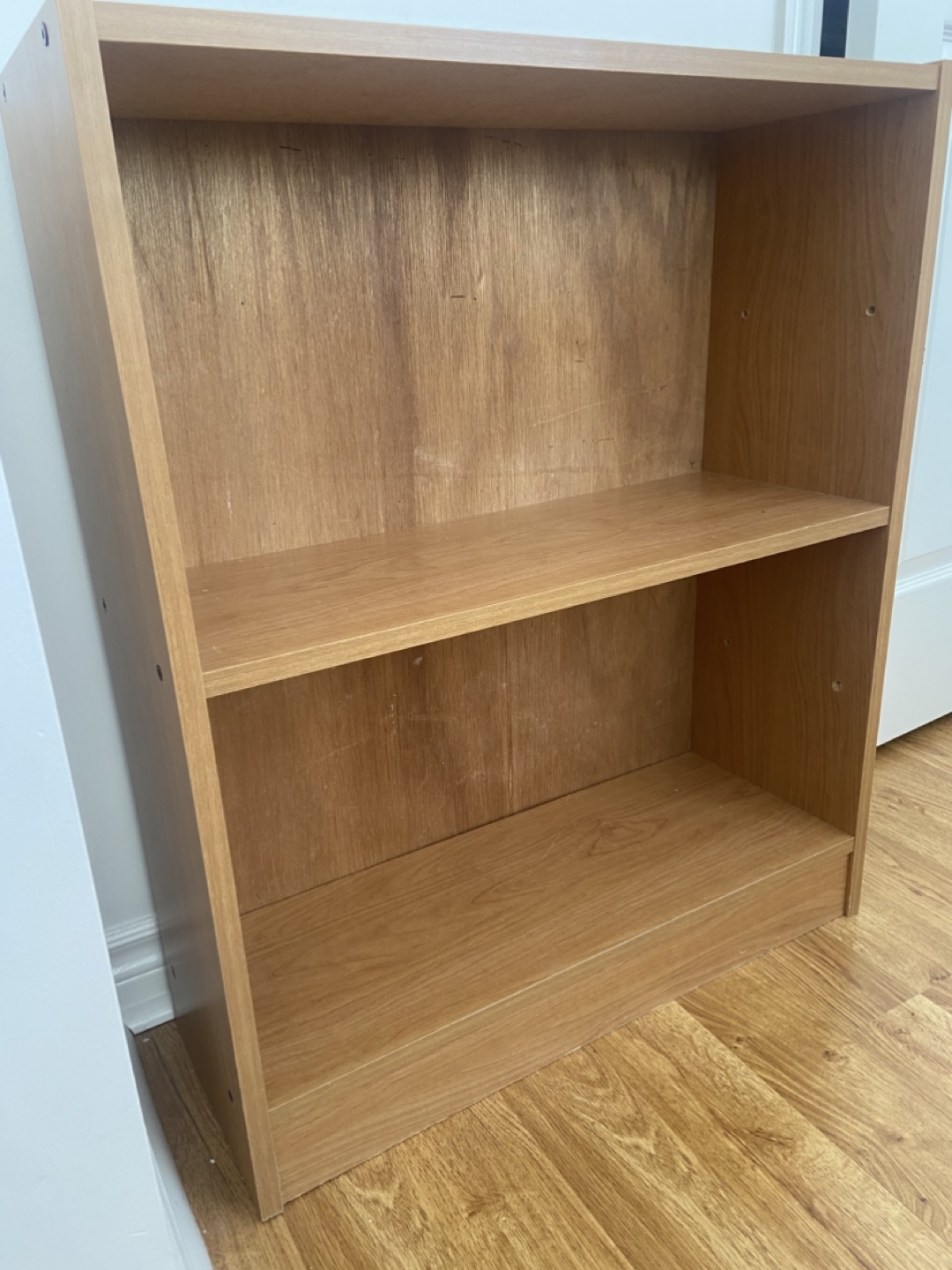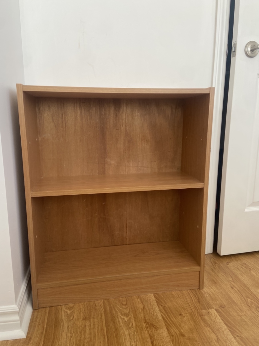 1 / 41 / 4Buy & SellTwo-shelf bookcaseTwo-shelf bookcase$5Small wooden bookcase. Two shelves. Light oak finish. Minimalist design. Good for small spaces. Pick up only.ConditionGoodDimensionsW 25” x D 9” x H 30”WHERE TO MEETEllesmere and BirchmountView MapSELLERverifiedAdaDorset Park21213 reviews2 chats·2 favorites·57 viewsSEND CHAT TO SELLERHi Ada! I’m interested in your listing.Hi Ada! I’m interested in your listing.Get the Karrot app to chatSign In to chat