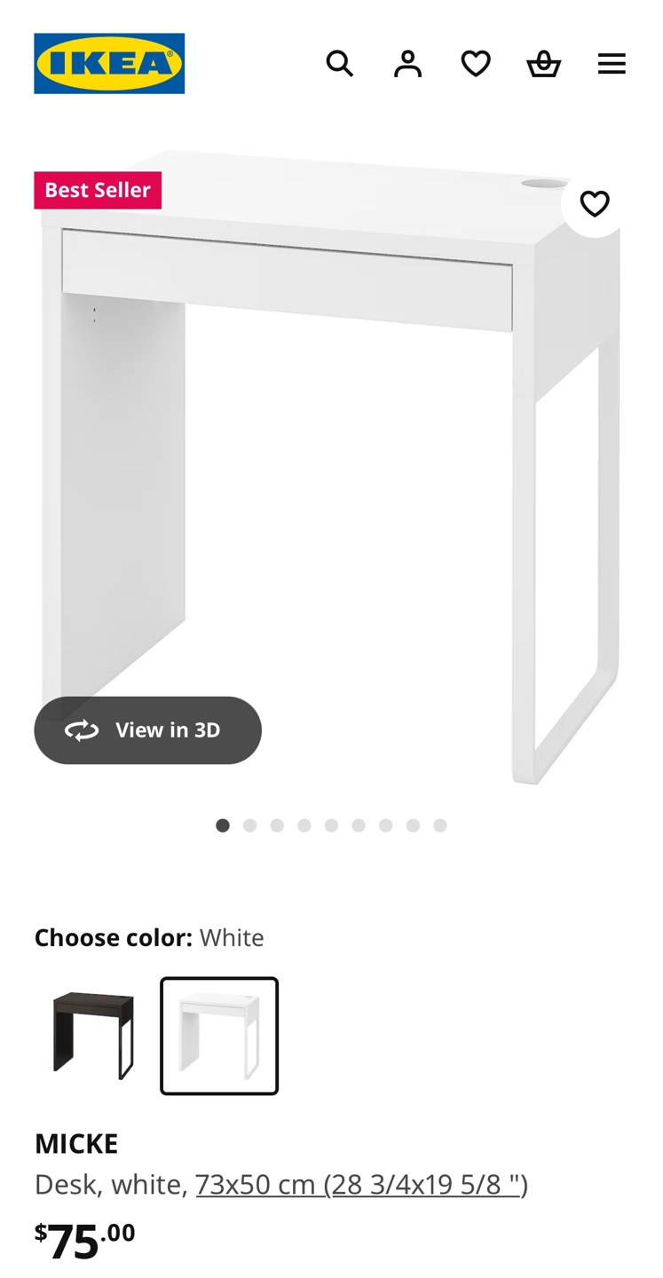 1 / 41 / 4Buy & SellIKEA MICKE Desk - WhiteIKEA MICKE Desk - White$45White desk with one drawer. Small, simple design. Good for small spaces. A few minor scratches on top of desk. Pickup only at Yonge and Eglinton!ConditionGoodWHERE TO MEETStock T.C.View MapSELLERverifiedAlanaYonge Eglinton1618 reviews1 chats·0 favorites·54 viewsSEND CHAT TO SELLERHi Alana! I’m interested in your listing.Hi Alana! I’m interested in your listing.Get the Karrot app to chatSign In to chat