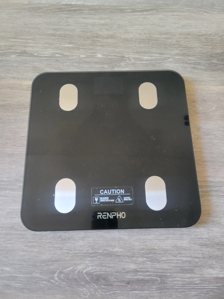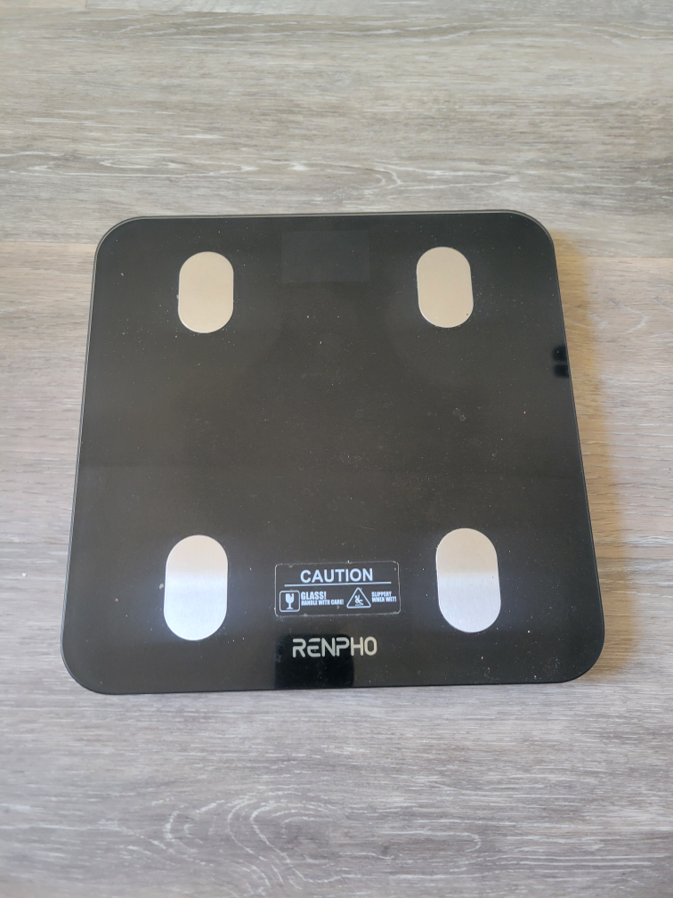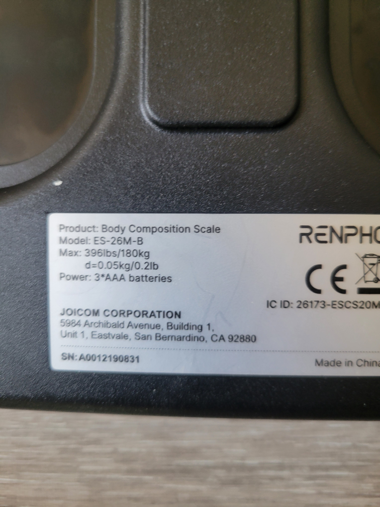 Black glass top. Four sensors. Measures body composition. Powered by 3 AAA batteries. Maximum weight 396lbs/180kg. Accuracy 0.05kg/0.2lb. Includes model number and serial number. smart scale , there is an app to view the metrics in detail.