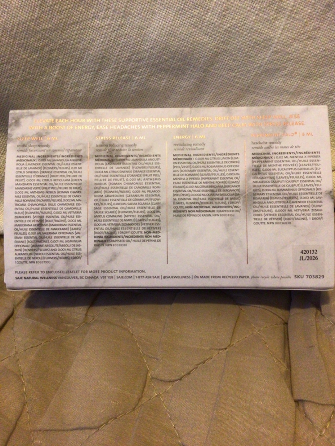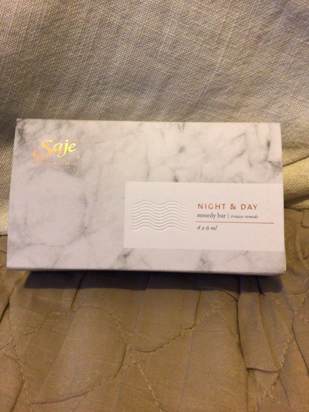 New Saje Wellness Night & Day Remedy Bar. Four 6ml roll-ons. Includes sleep, stress release, energy, and invigorating remedies. Made from recycled paper.