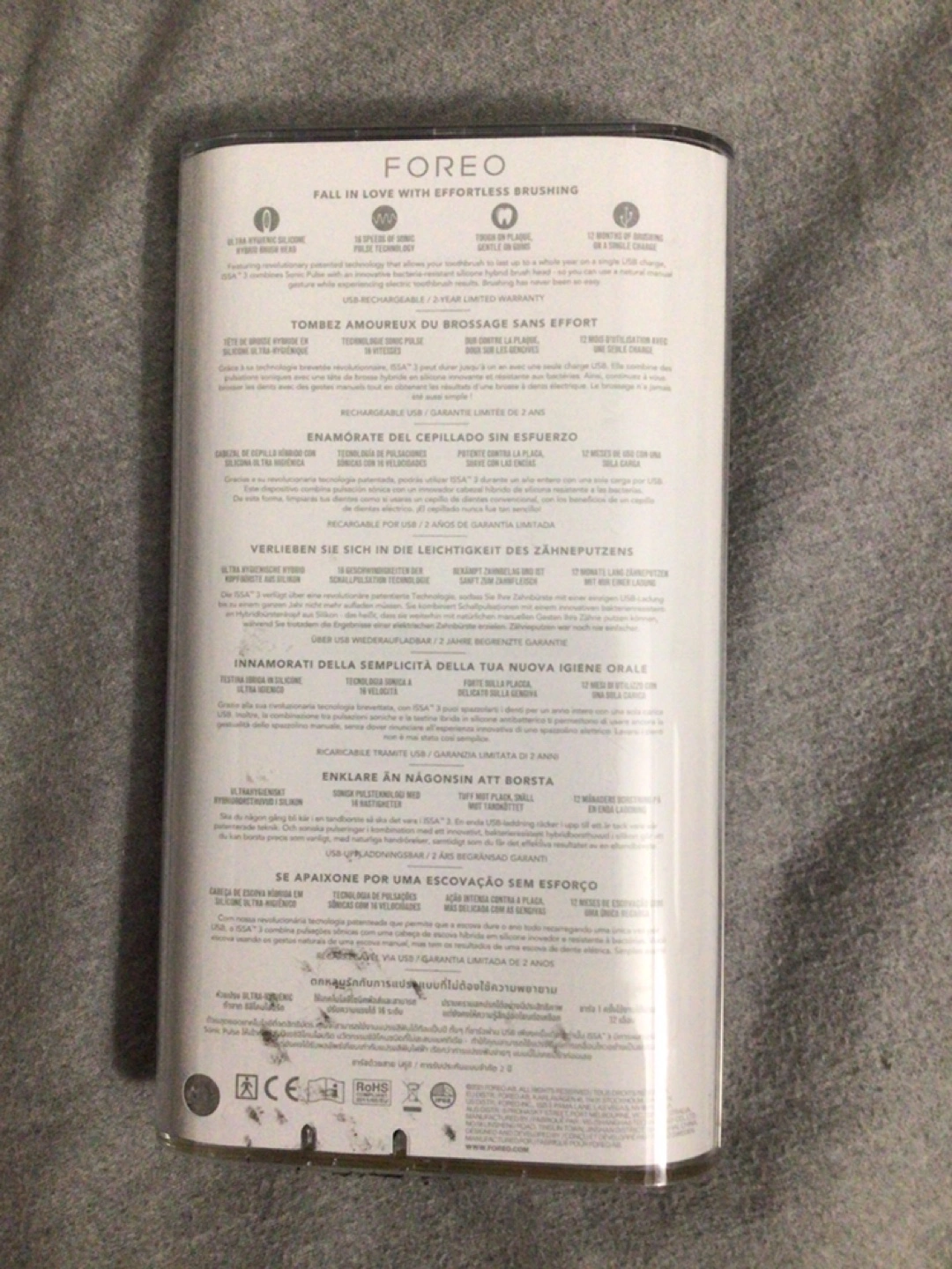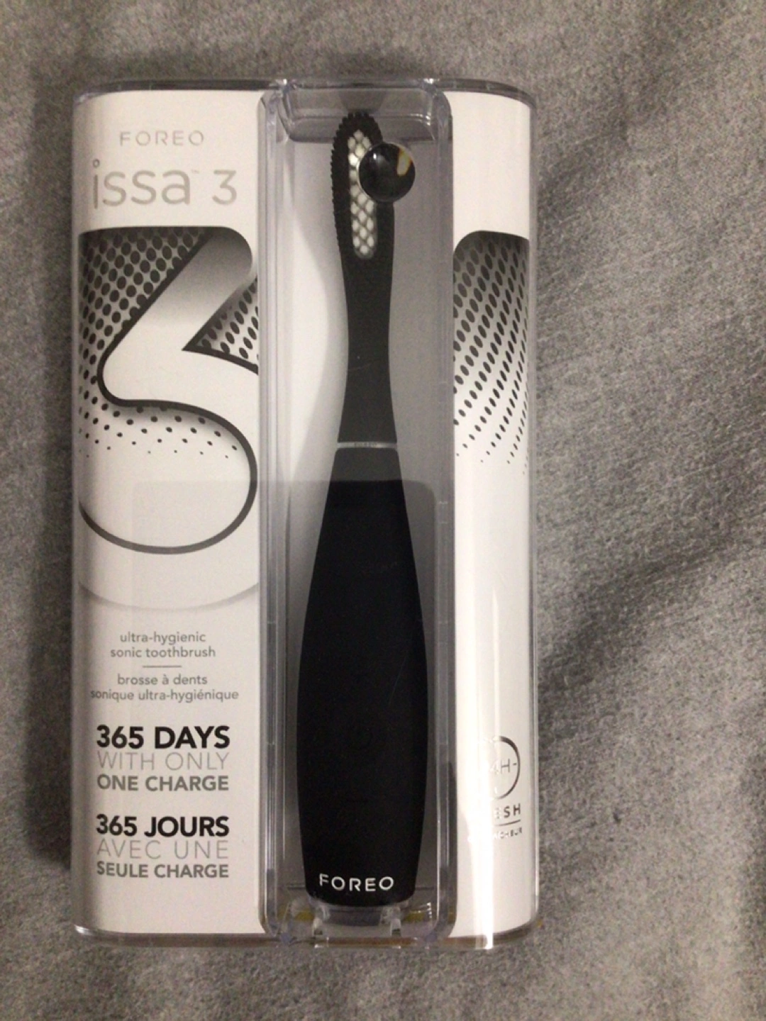 Brand new FOREO ISSA 3 ultra-hygienic sonic toothbrush. 365 days with only one charge. Rechargeable. Includes box and packaging.