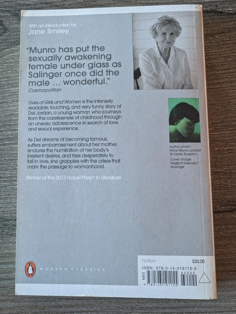 Paperback book. Alice Munro. Lives of Girls and Women. Modern Classics series. Includes an introduction by Jane Smiley. Winner of the 2013 Nobel Prize in Literature.