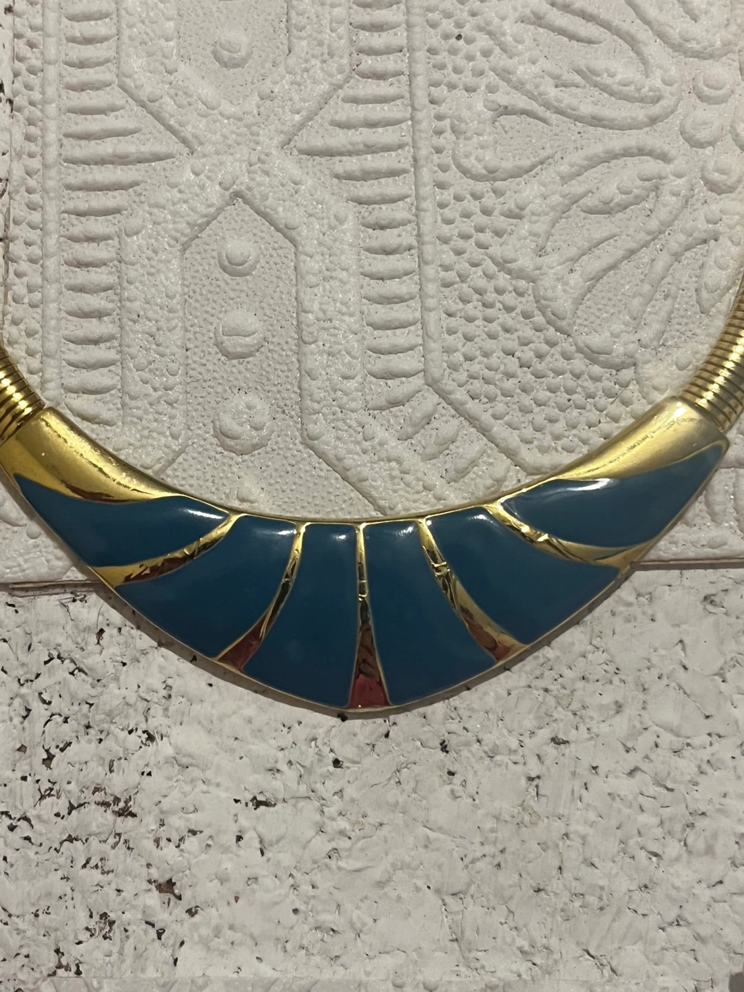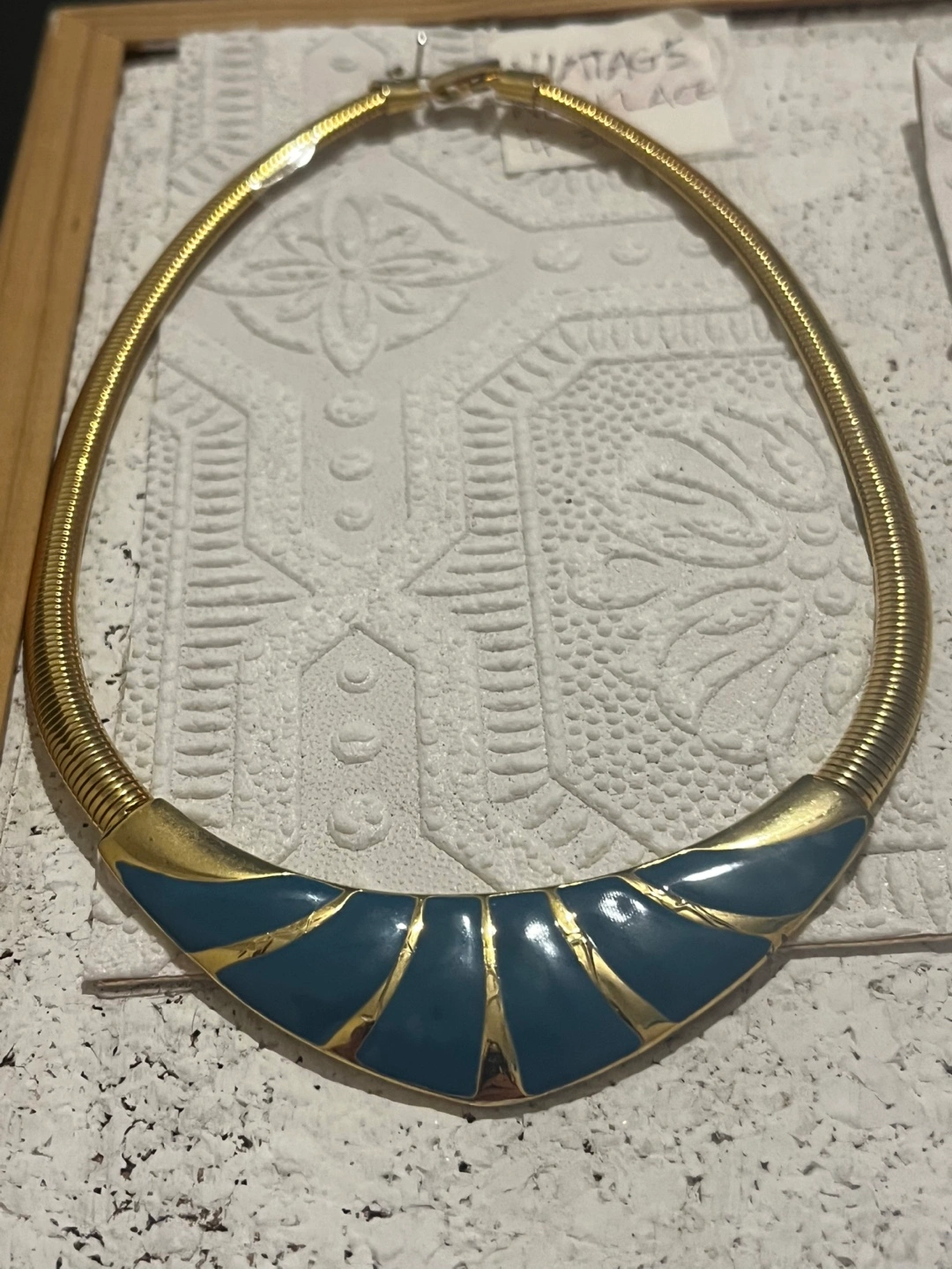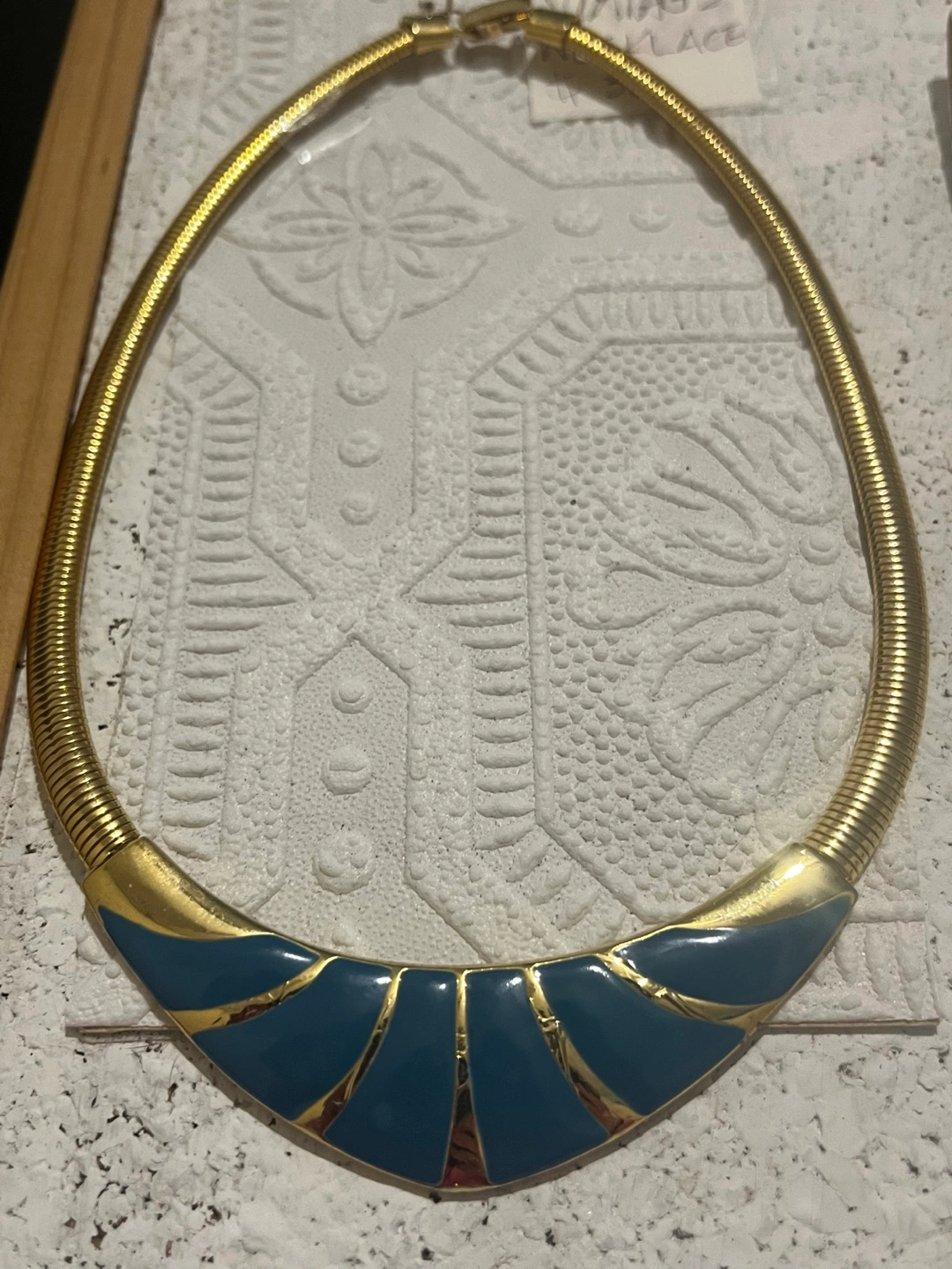 Vintage Gold Tone and Teal Enamel Statement Necklace