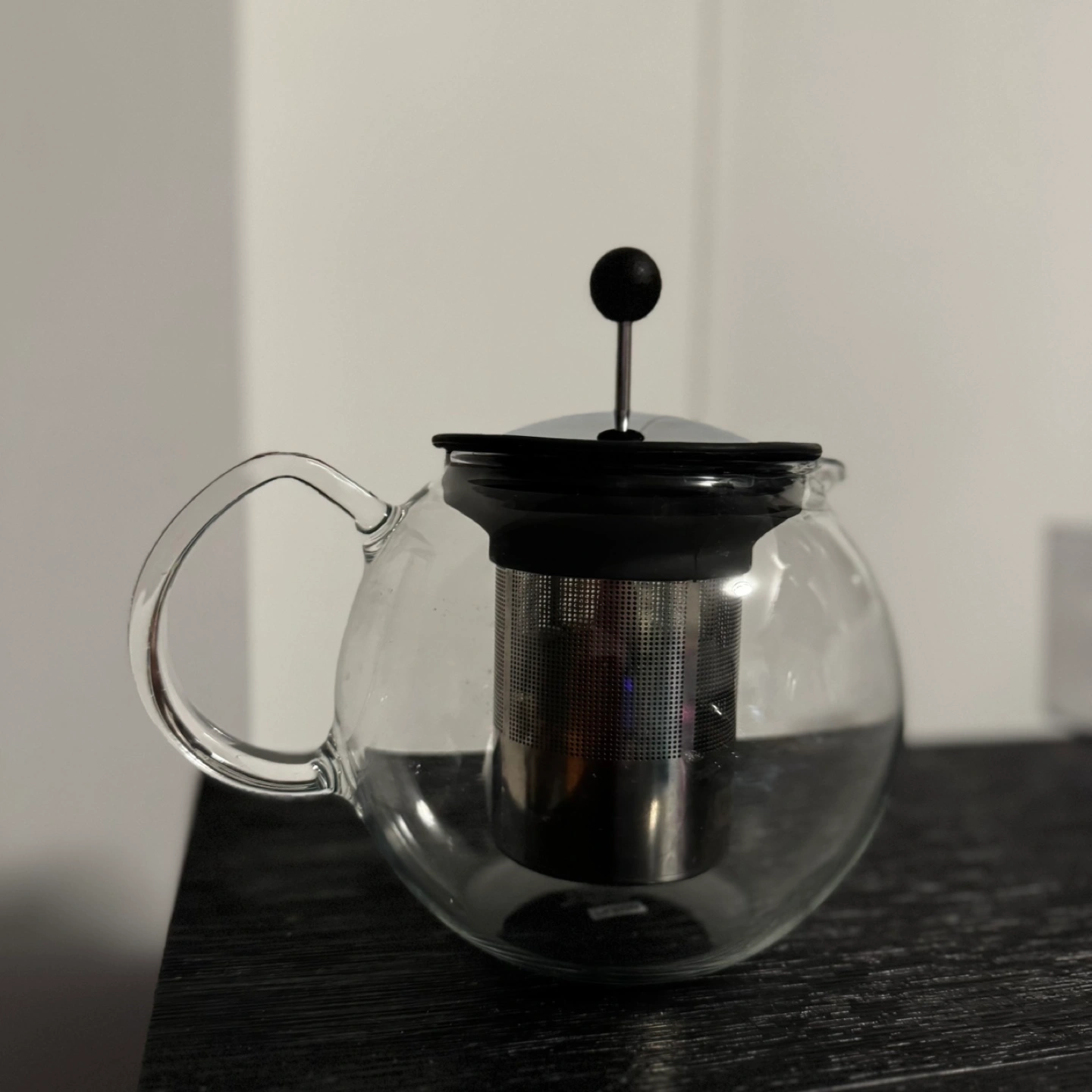 Glass tea press with glass handle. Elegant design. Note: this is the more expensive version of the tea pot with glass handle. Used once or twice to host a high-tea party otherwise have been in my cabinet as im not a tea person.