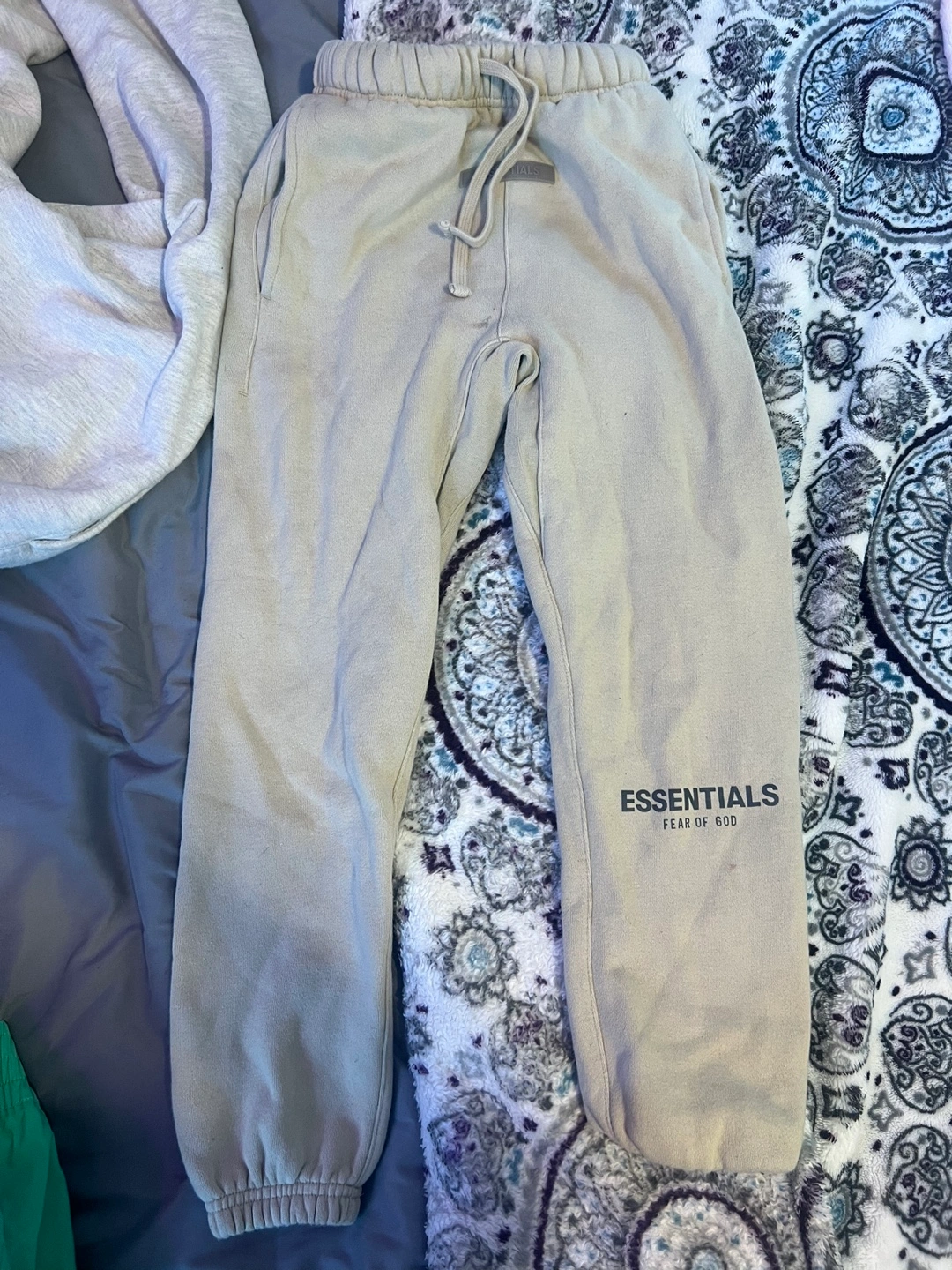 Excellent condition. Light beige colour. Drawstring waist. Elastic cuffs. Logo on leg. Comfortable and stylish. Bought both for 100 each .