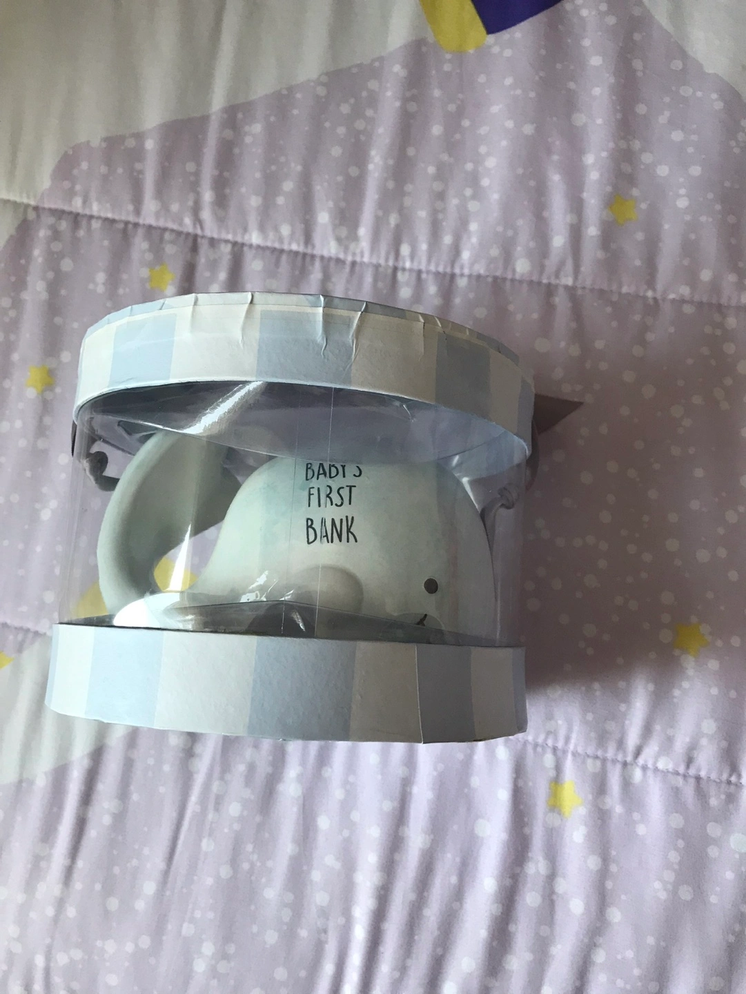 10Adorable whale-shaped piggy bank. Perfect baby shower gift. New, in original packaging. Light blue colour.