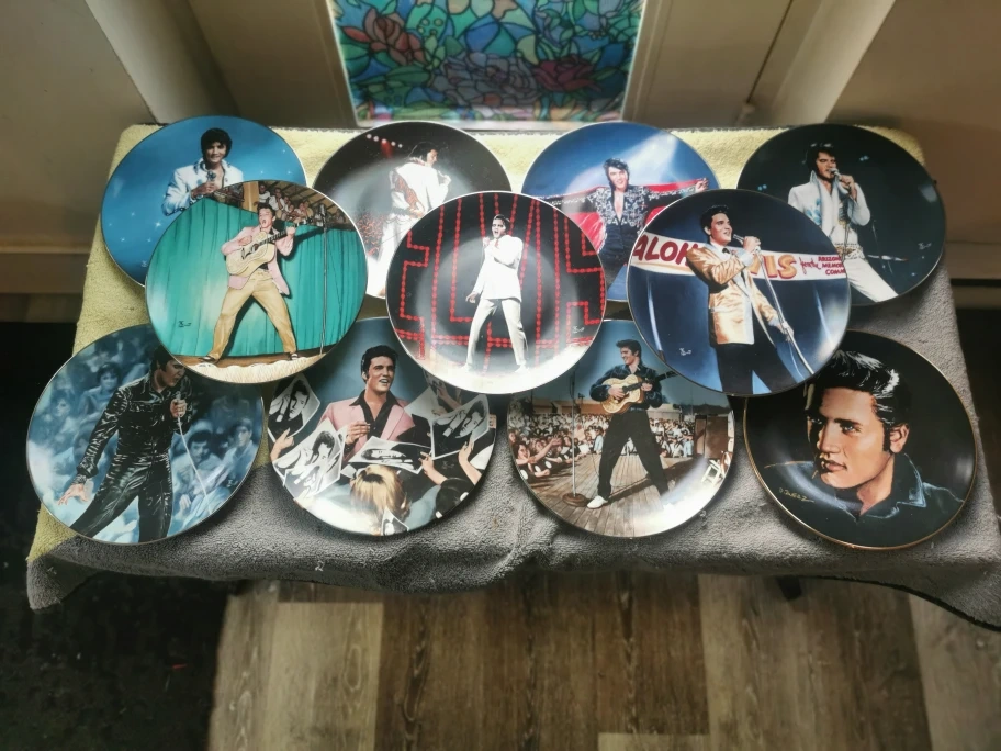 I am selling (possibly trade) a collection of eleven Elvis Presley commemorative plates. Various images of the King. Excellent condition. Perfect for collectors.