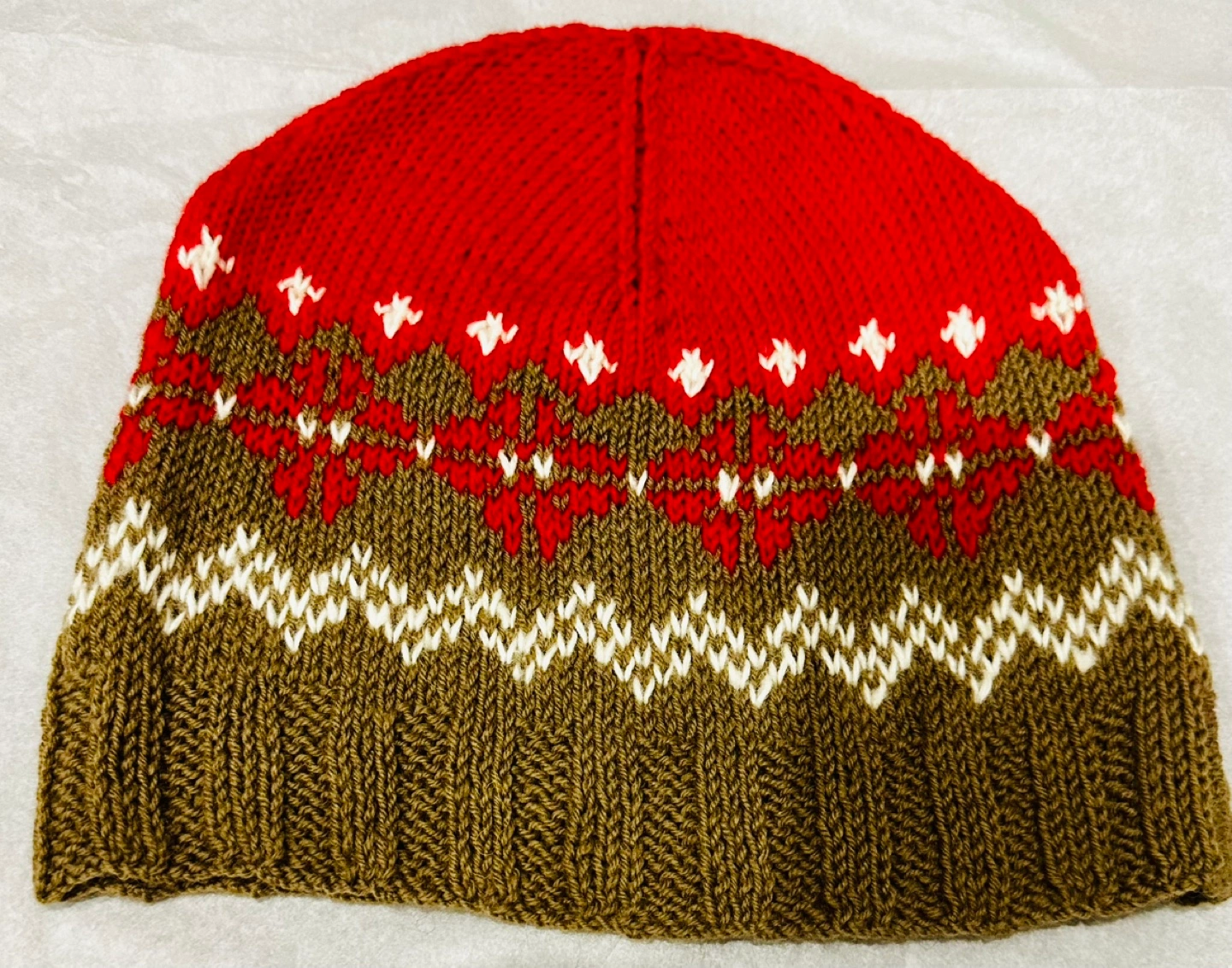 Hand Knit Wool Beanie - Fair Isle Pattern