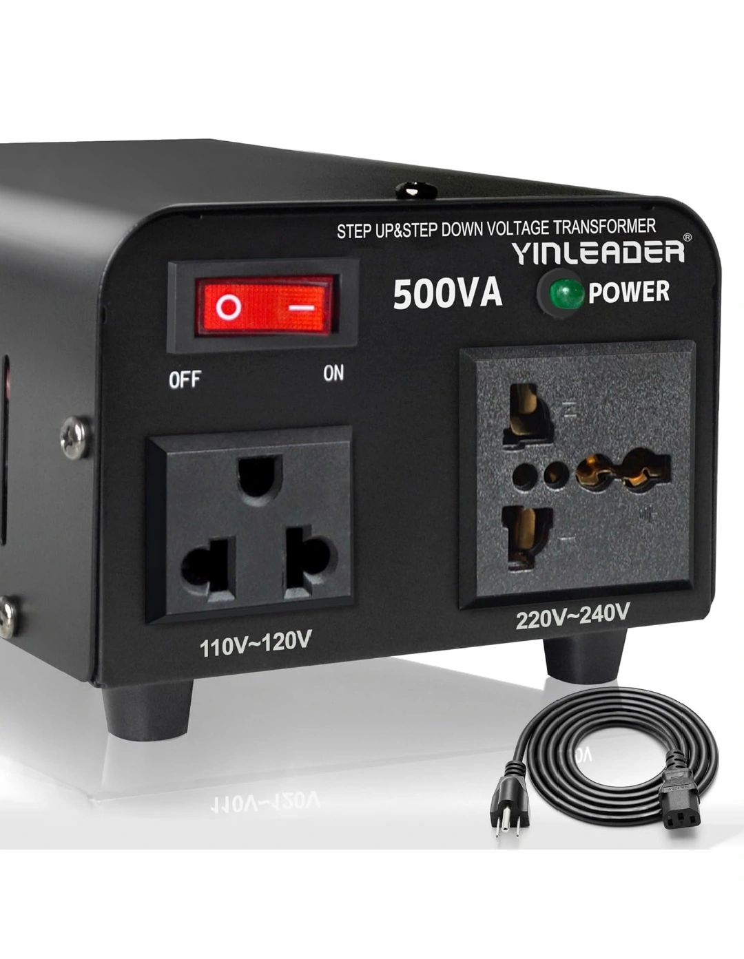 Yinleader 500W Voltage Converter Transformer Step Up/Down (110V to 220V / 220V to 110V) w/Circuit Protection,US Power Cord.