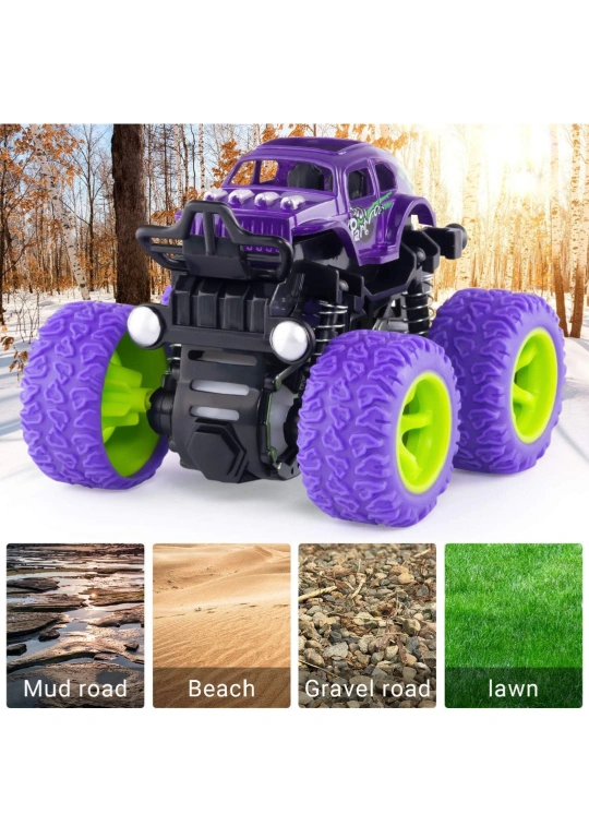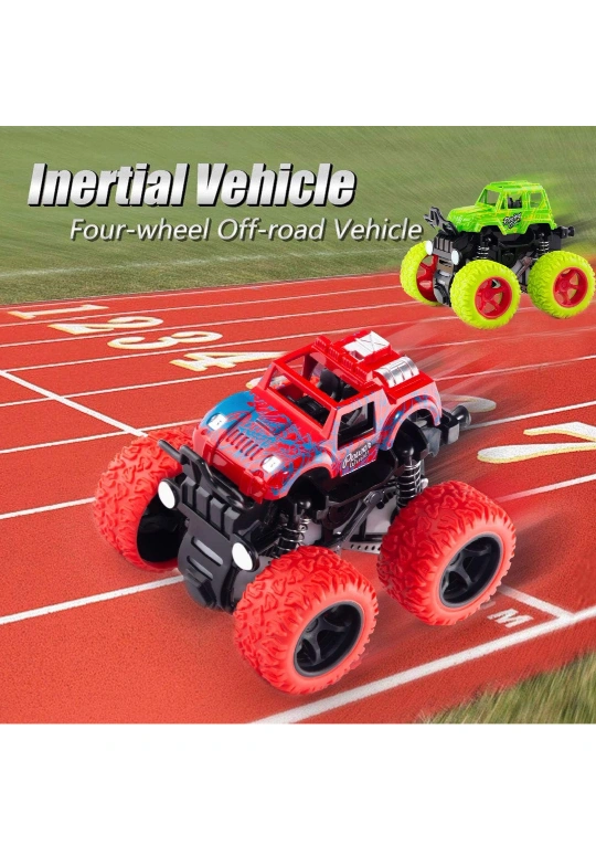 4 Pack Monster Truck Toys - Friction Powered Push and Go Toy Cars, Inertia Car Toy Set Stunt Toy Vehicles, Birthday Party Supplies for Boys and Girls.