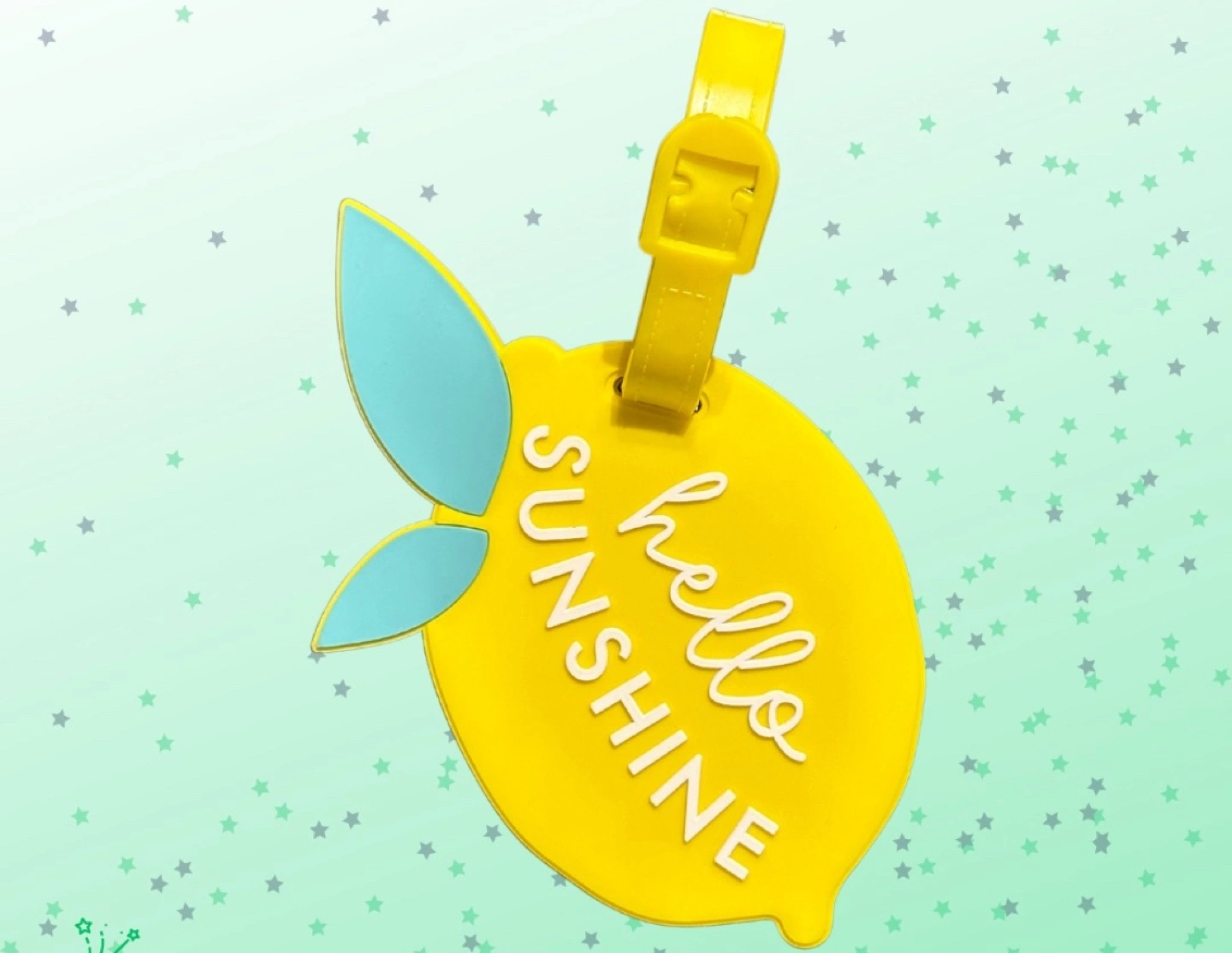 10Cute and colourful luggage tags. Perfect for kids! Lemon, rainbow, pink, and tropical leaf designs. Durable silicone material. Great for travel!