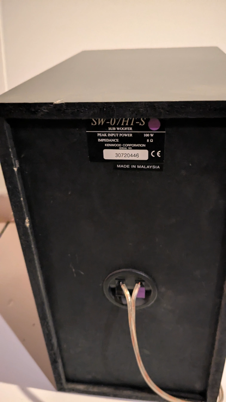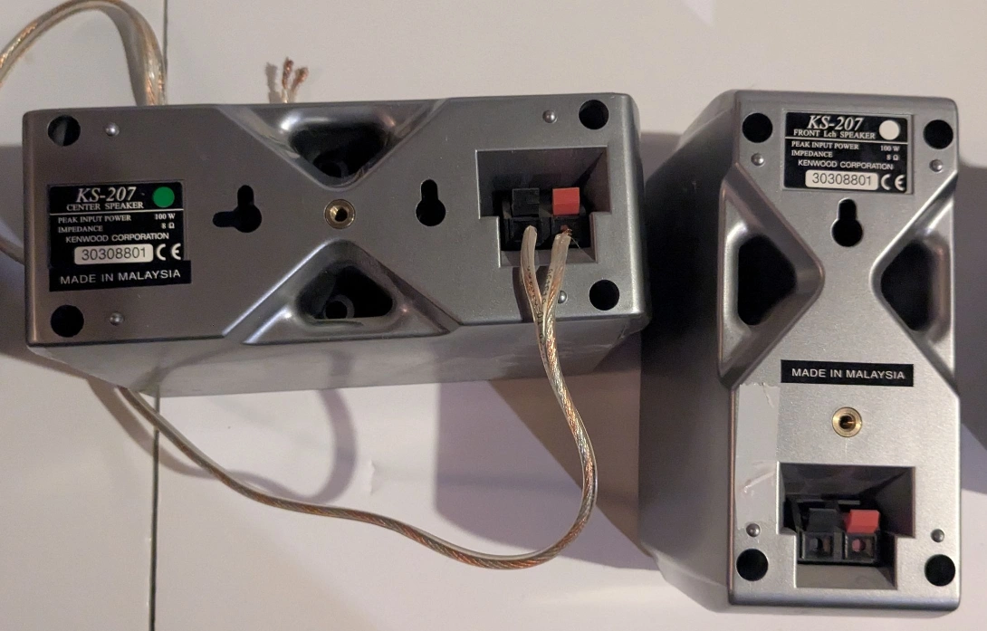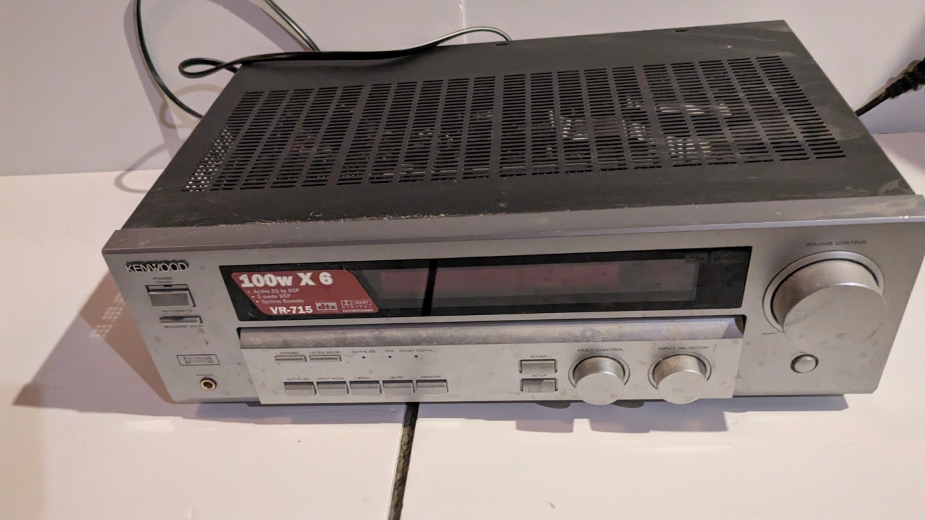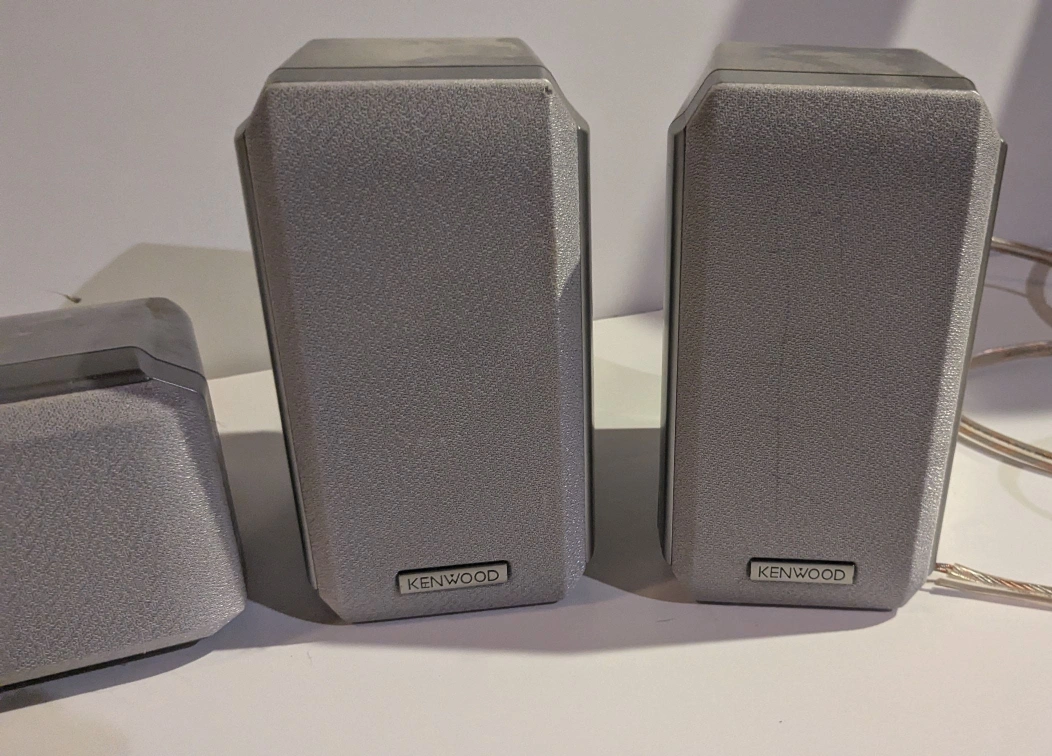 Kenwood VR-715 receiver and five KS-207 speakers. Receiver has some wear. Speakers show minimal signs of use. Great starter home theatre system.