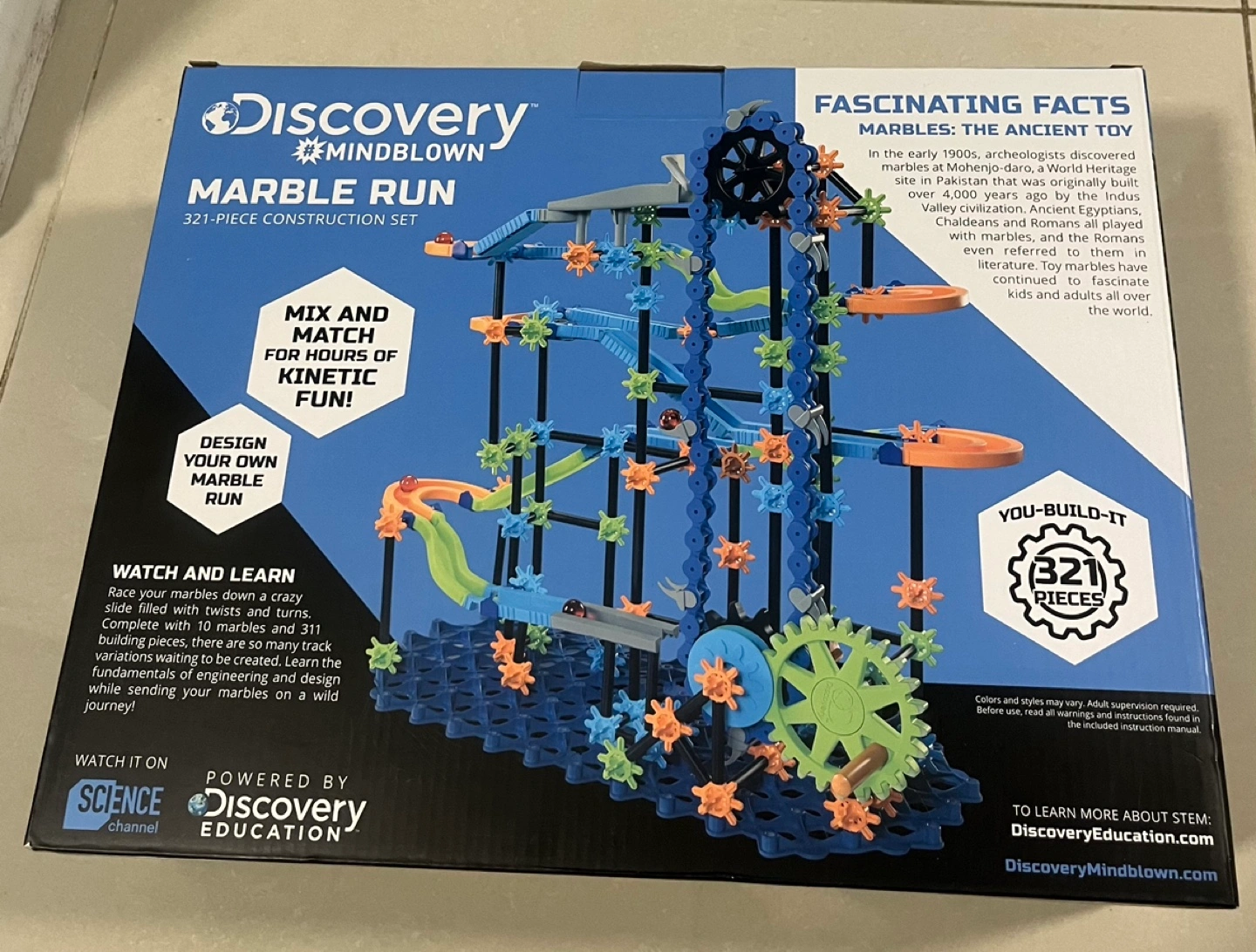 321-piece marble run construction set. Build your own marble run with twists and turns.