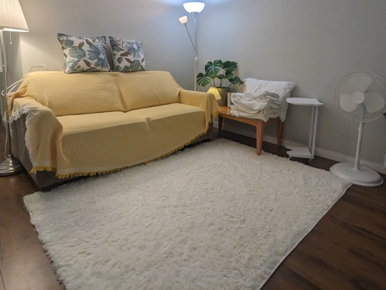 Large White faux fur rug. Soft and fluffy.