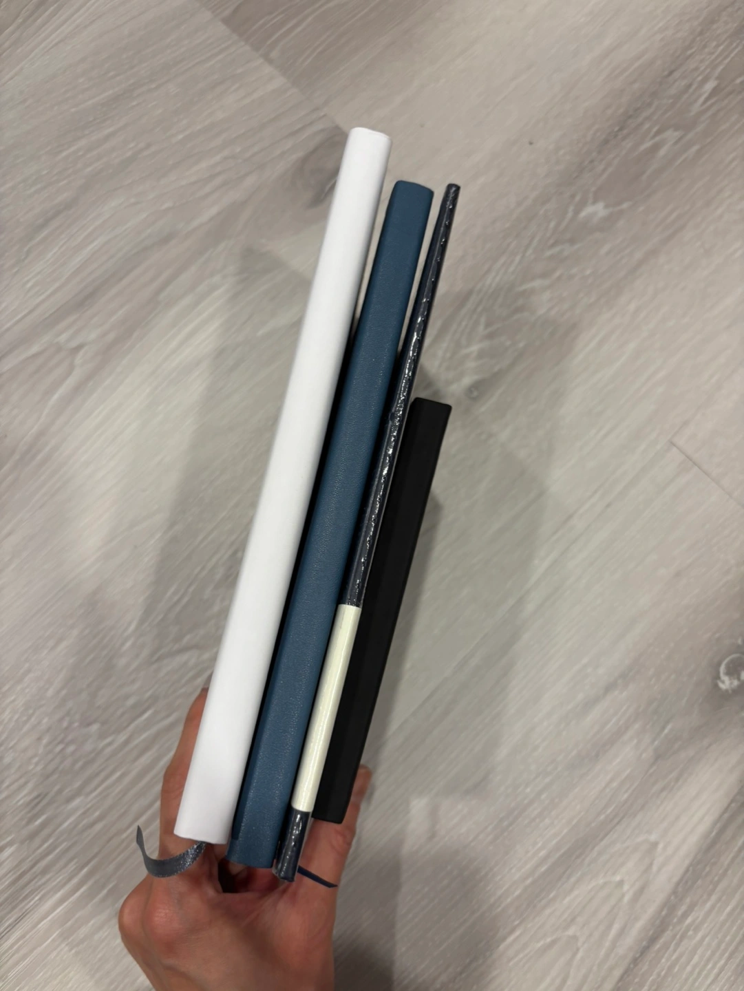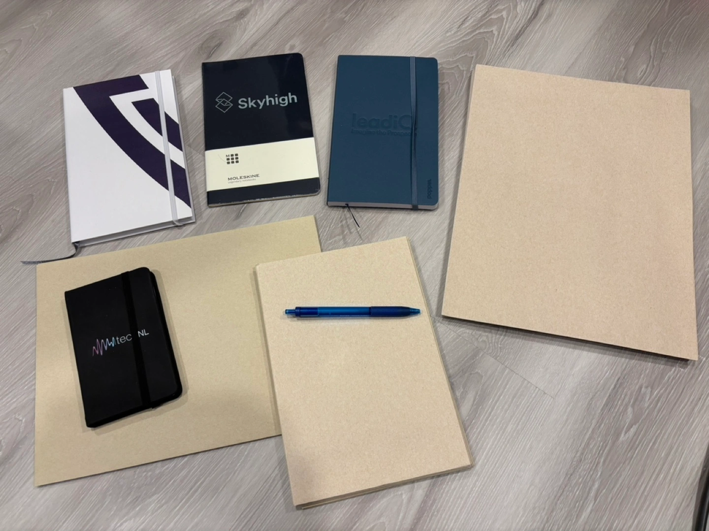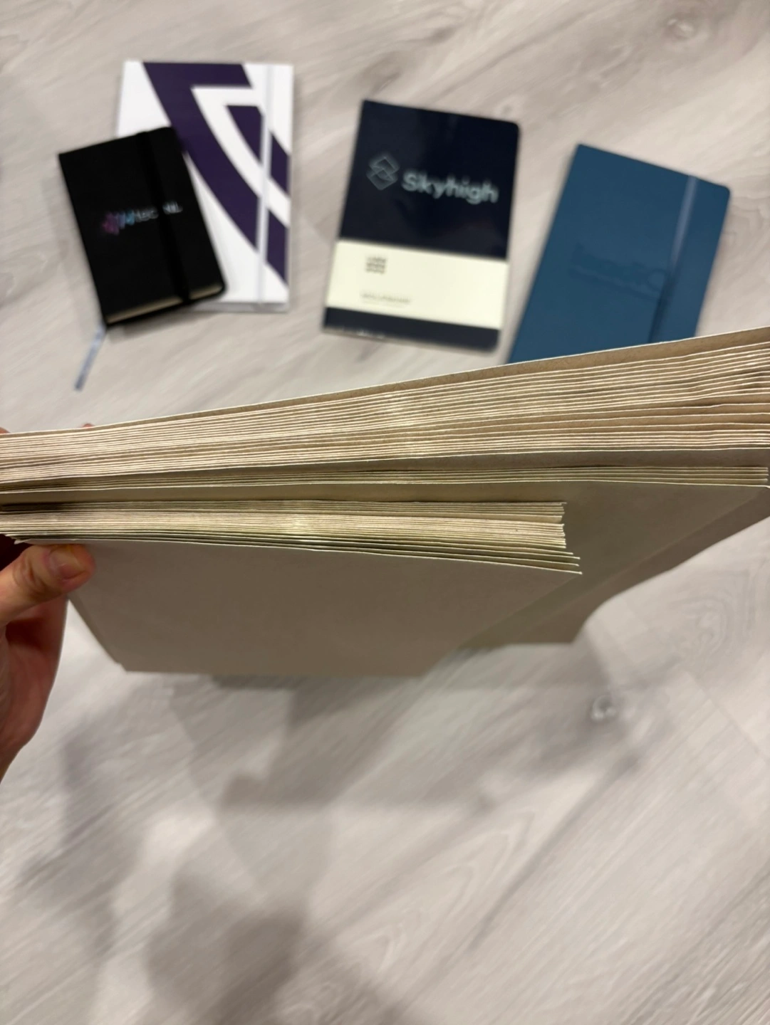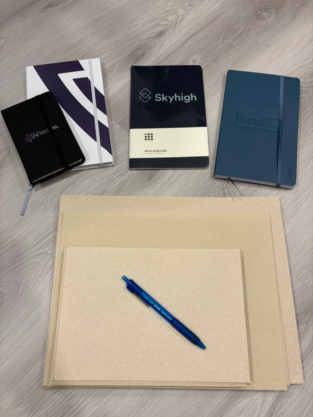 Four notebooks various sizes and brands. Includes a Moleskine notebook