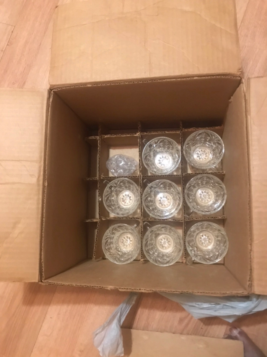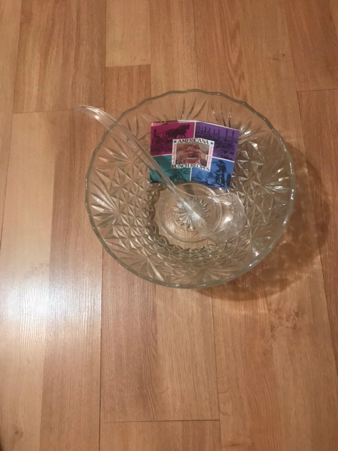 50Crystal punch bowl and ladle. Includes eight matching cups. Beautiful cut glass. Perfect for parties.