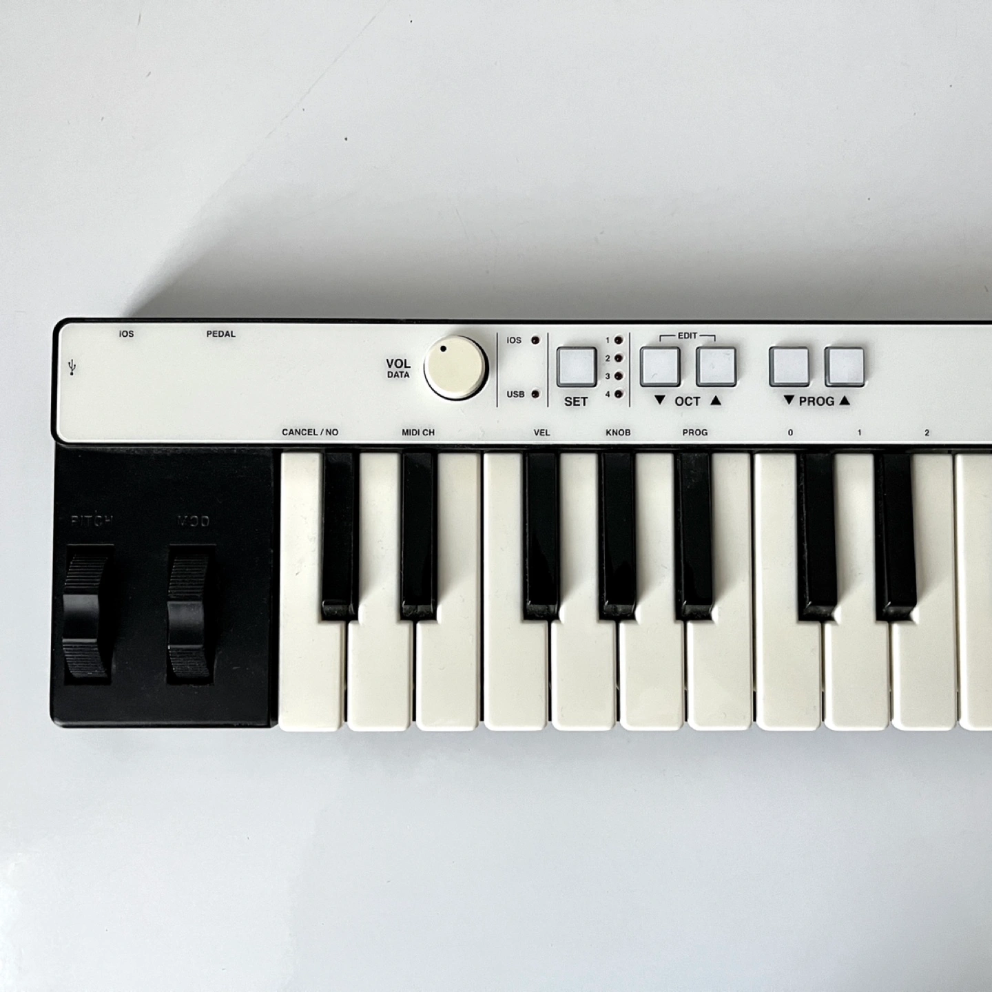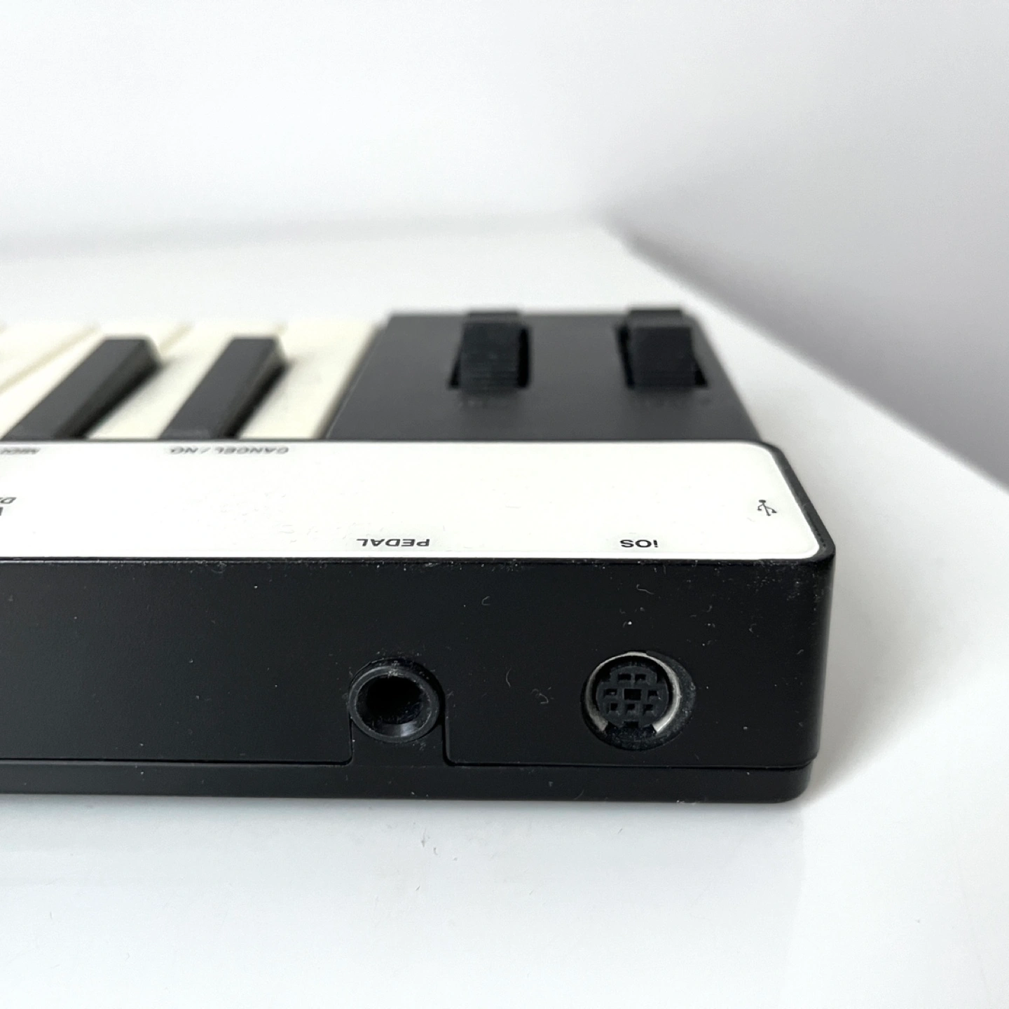 Compact MIDI keyboard controller. 25 keys, USB powered. Has pitch bend and Pedal input. Great for mobile music production - it fits in my backpack for 17” laptops. Will provide power wire.