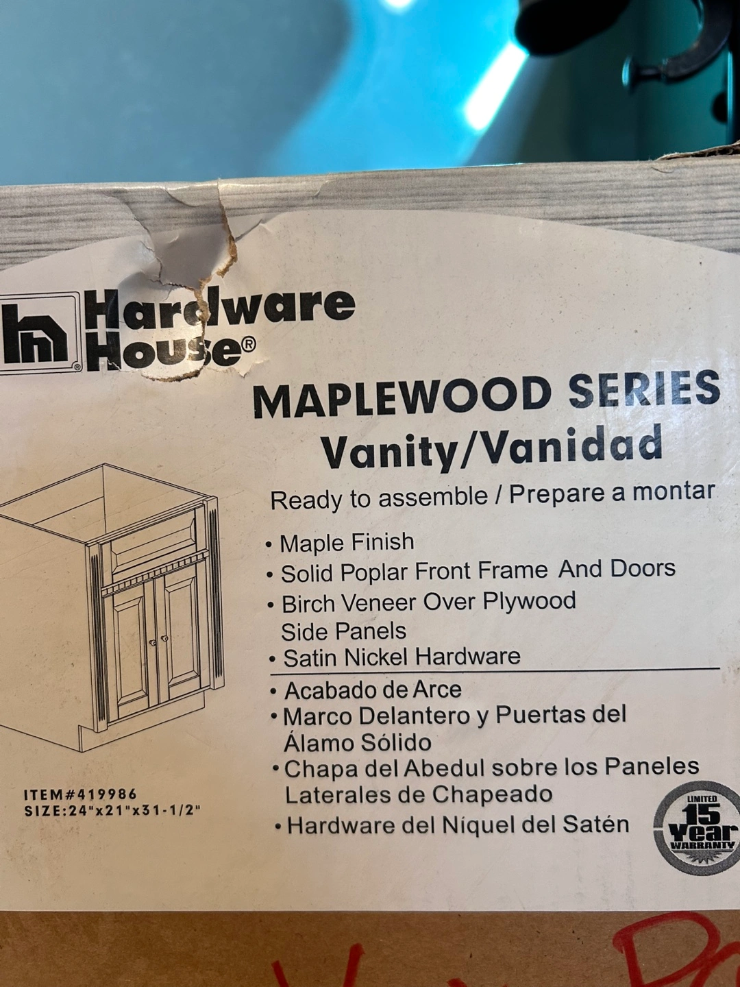 Hardware House Maplewood Series Vanity - Ready to Assemble