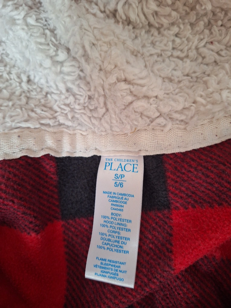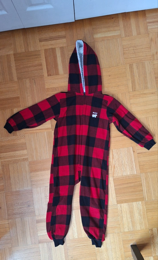 529Adorable red and black buffalo check footed pajamas. Features a sherpa-lined hood and full zipper. Size 5/6. Excellent condition. Not worn much.