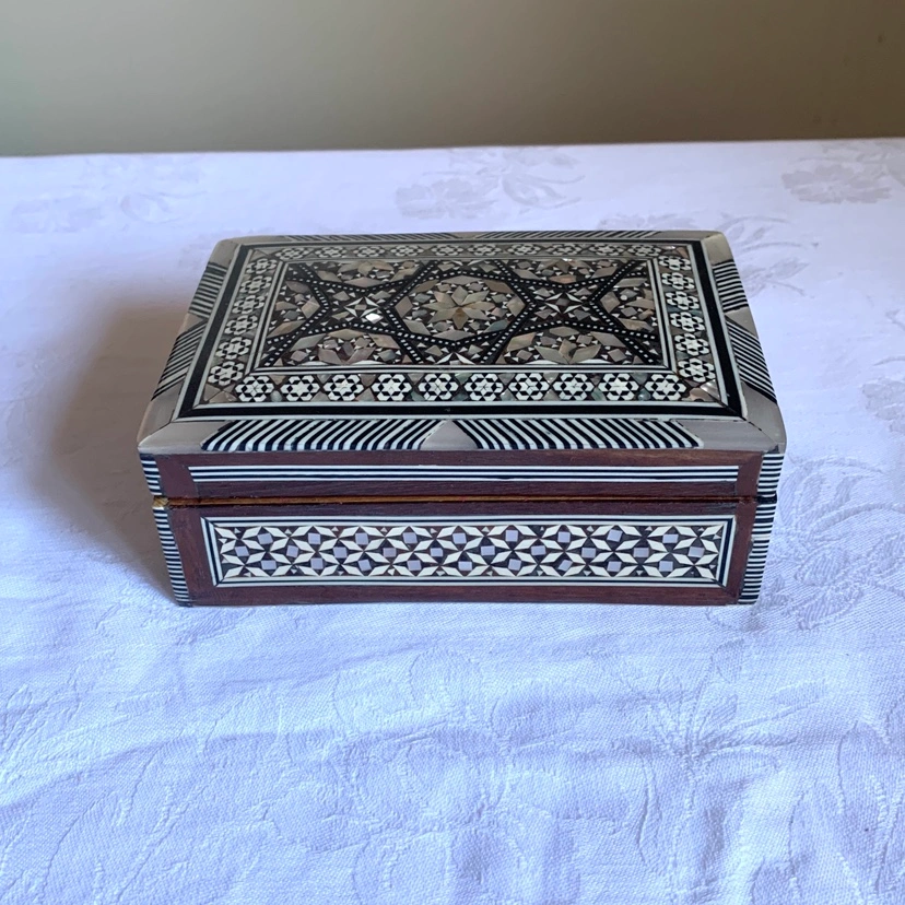 Small Wooden Box with Intricate Mother-of-Pearl Inlay