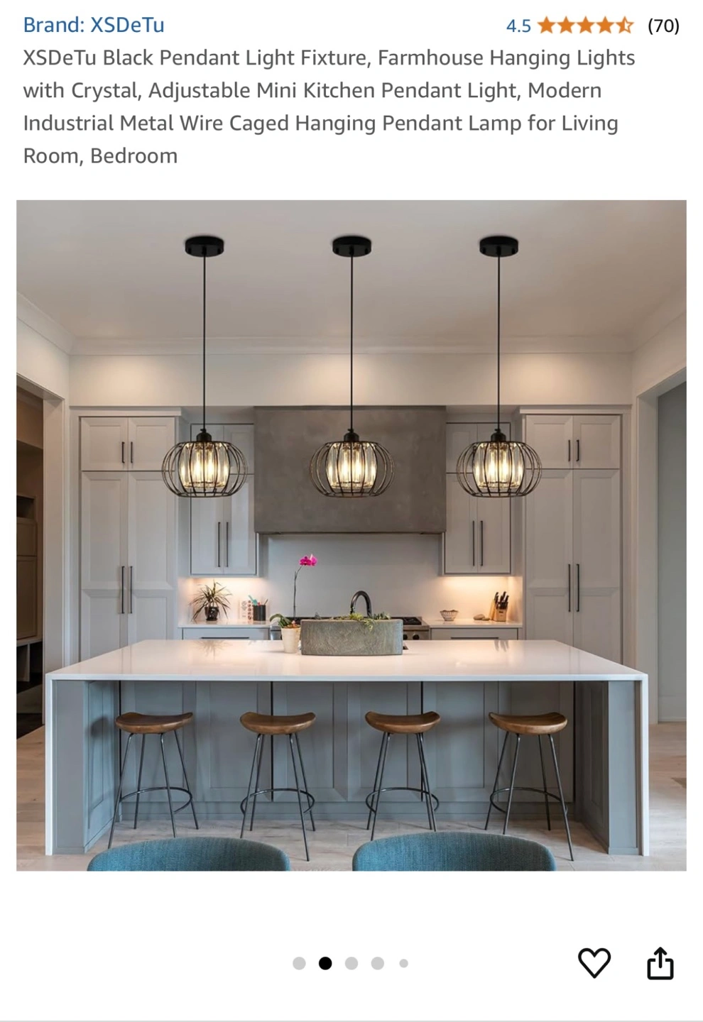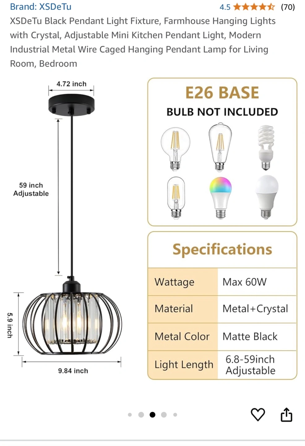 Black Pendant Light Fixture, Farmhouse Hanging Lights with Crystal, Adjustable Mini Kitchen Pendant Light, Modern Industrial Metal Wire Caged Hanging Pendant Lamp for Living Room, Bedroom BRAND NEW IN BOX Pick up Richmond Hill