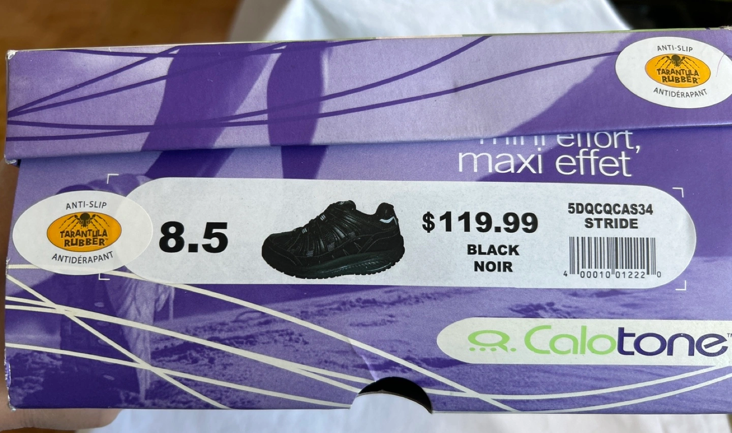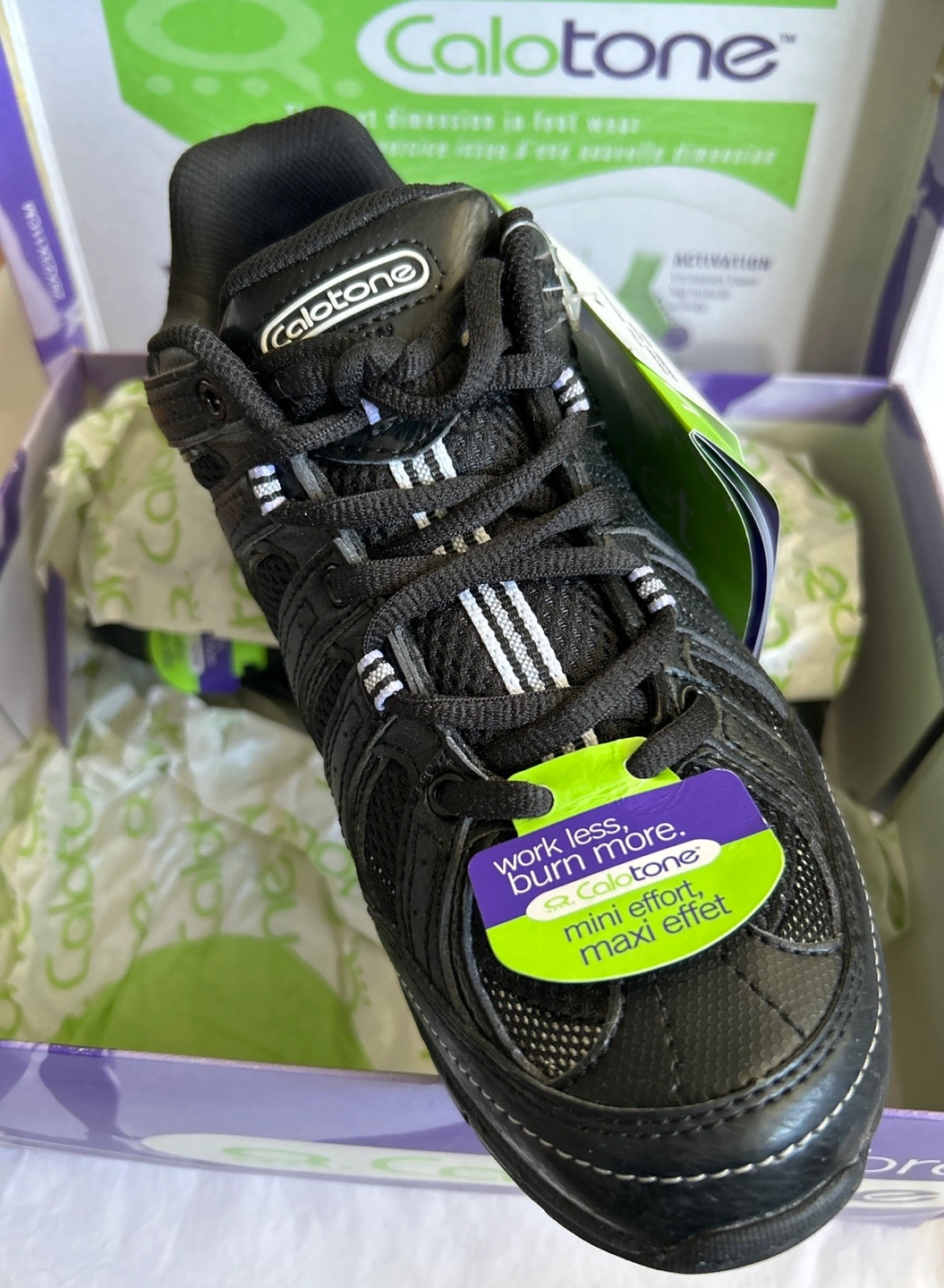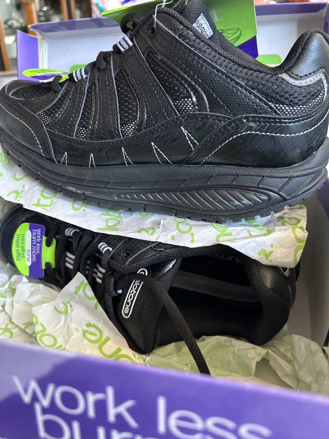 Brand New - Calotone women's walking shoes. Size 8.5. Black with white accents. Features include cushioned insole and Tarantula anti-slip sole. Comes in original box. Smoke/Pet free home. Cash and pick up only.