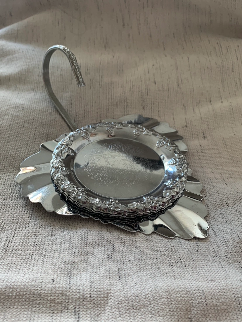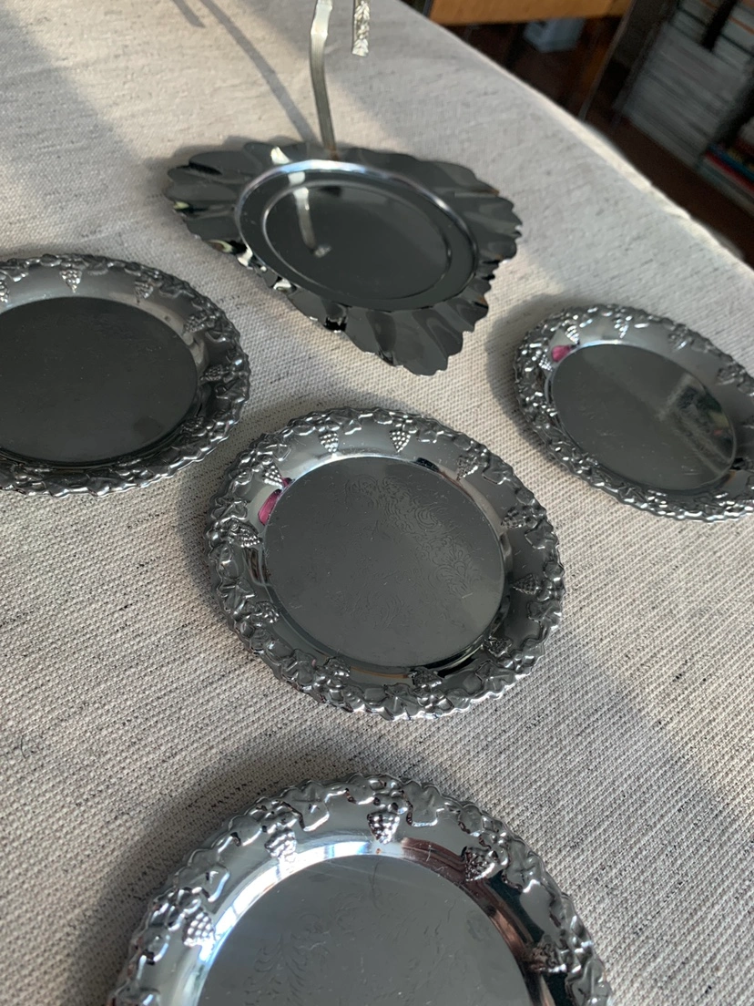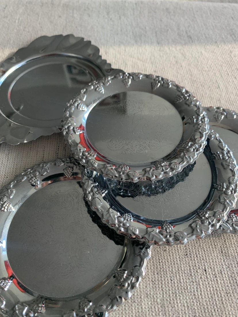 Vintage Silver-Plated Coasters with Base (5pc set)